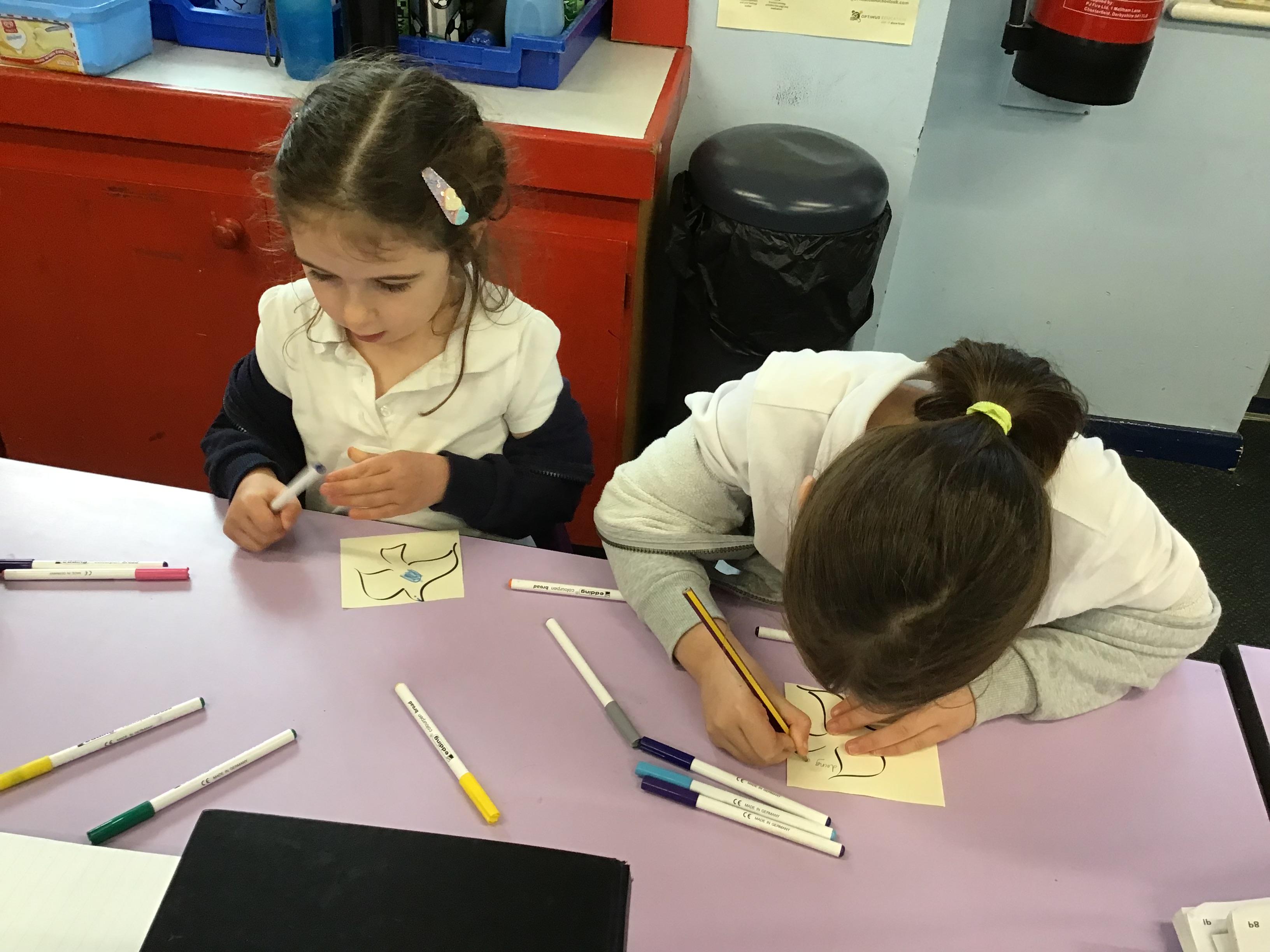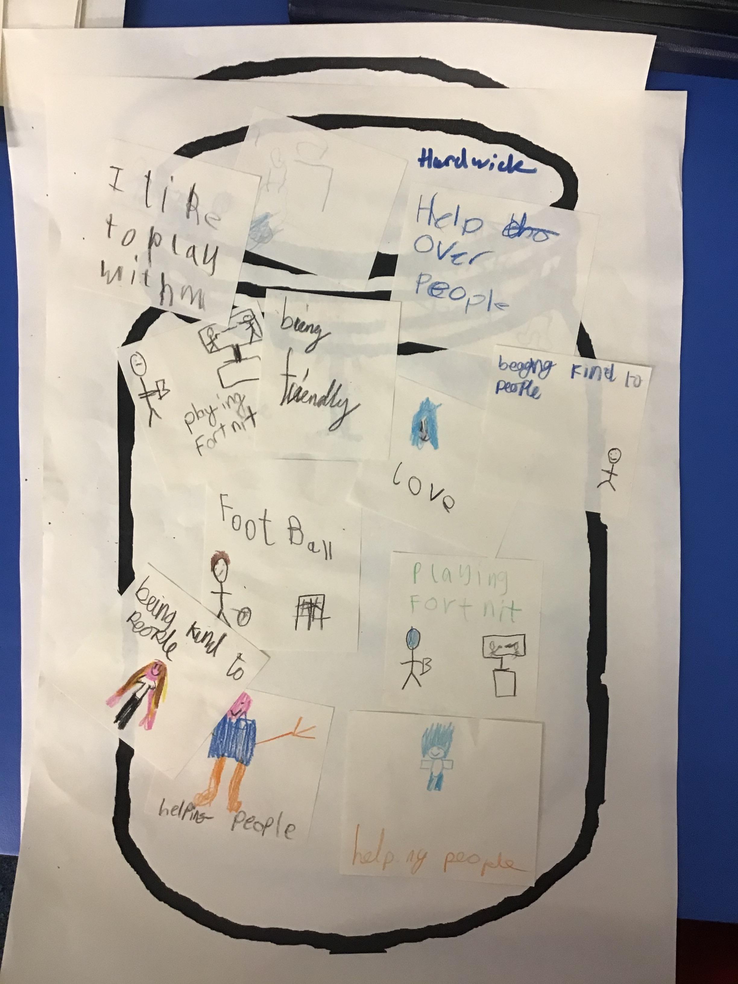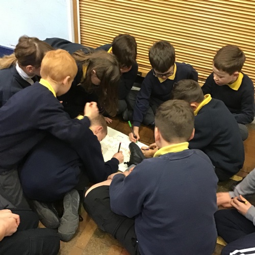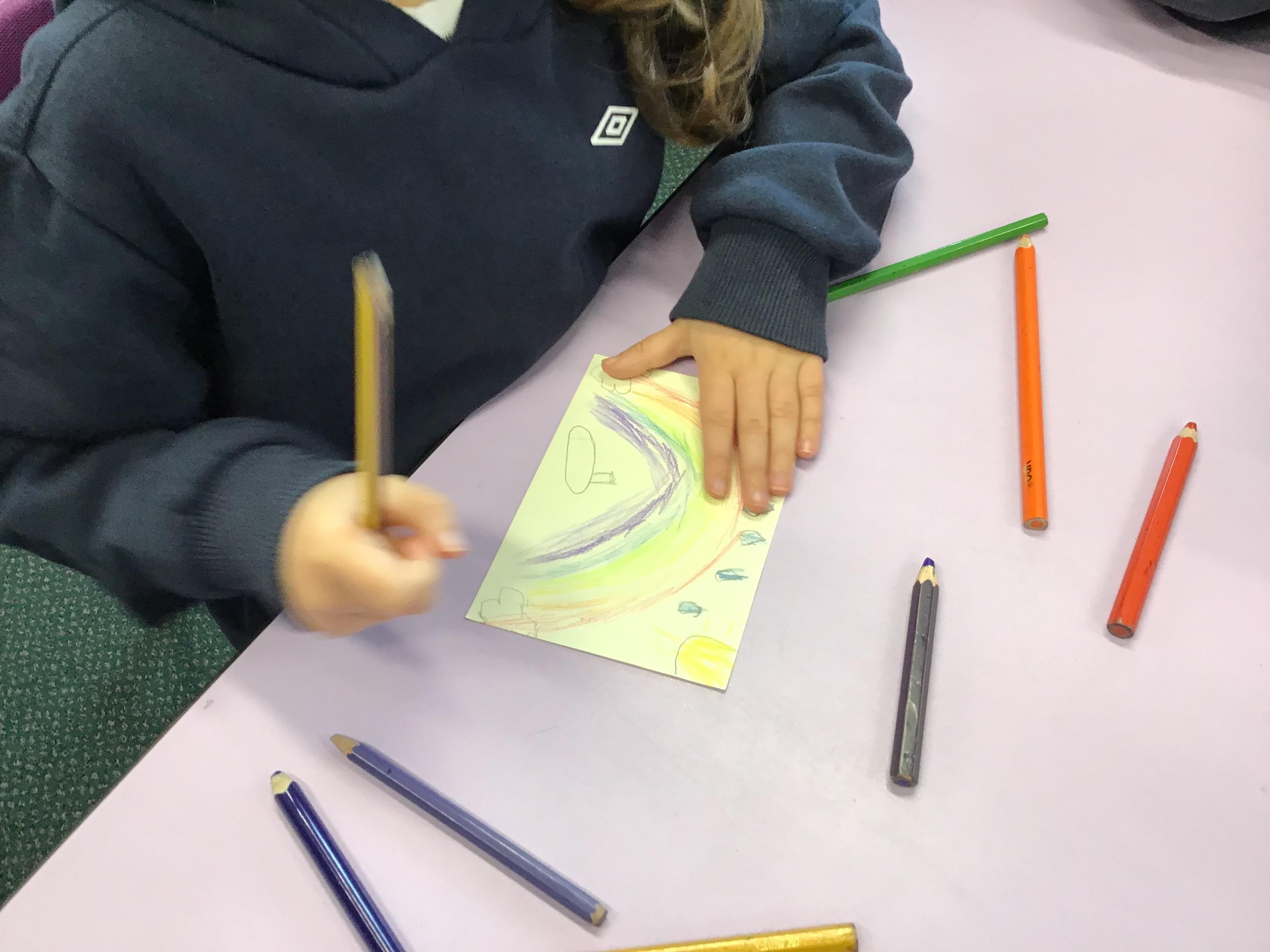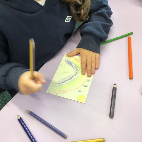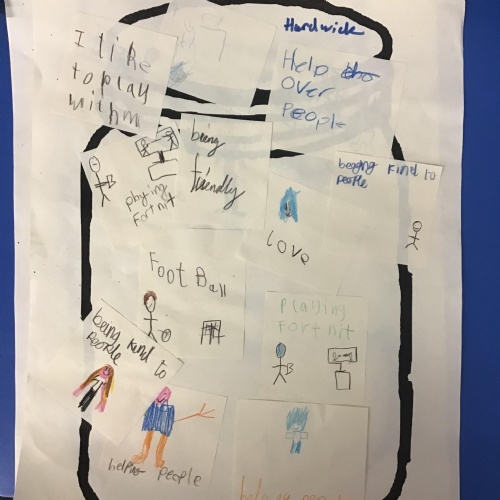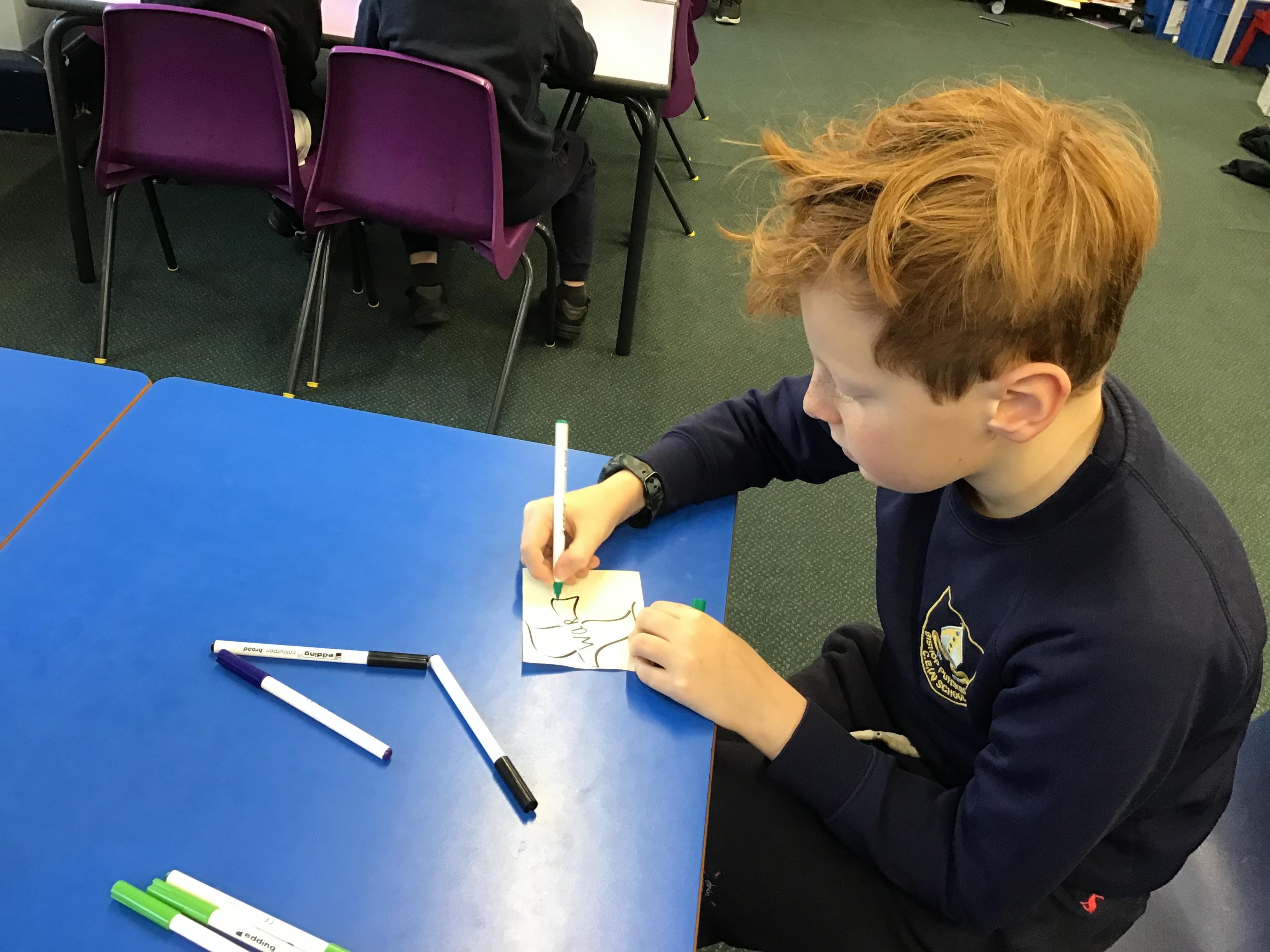 In House Worship the Year 6s have led worship. These activities have included - creating pictures with partners on whiteboards by rubbing out sections and redrawing them to make collaborative art. This linked to the message of forgiveness being a fresh start, like wiping the slate clean. We also thought about times when we have got things wrong and had to put it right. We drew around our hands to create beautiful hand artwork.