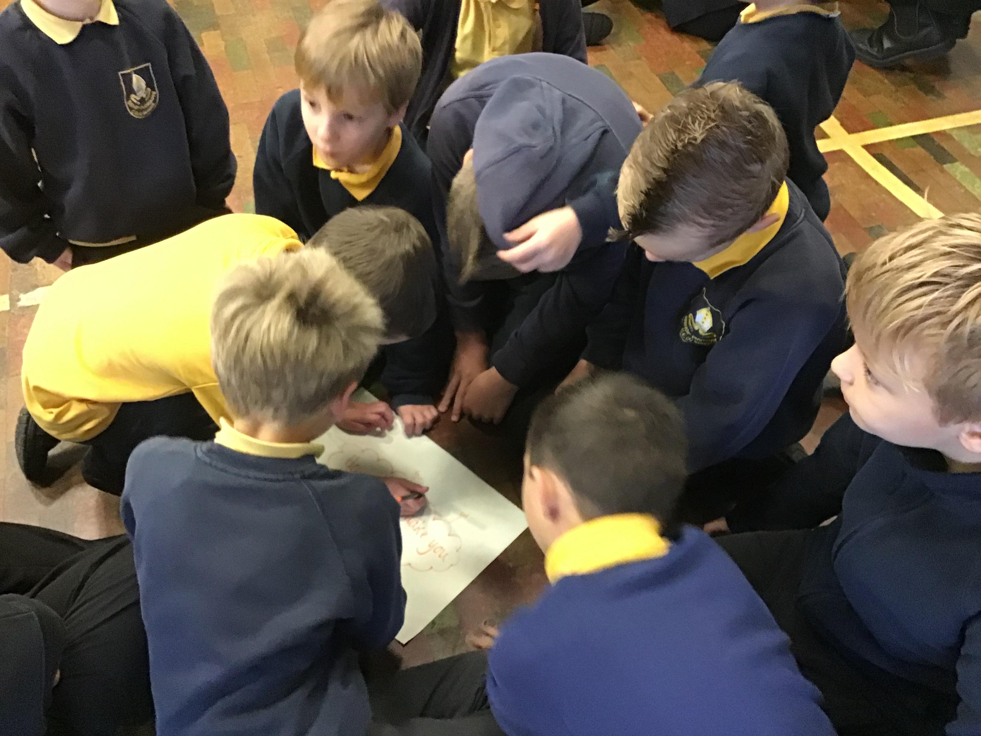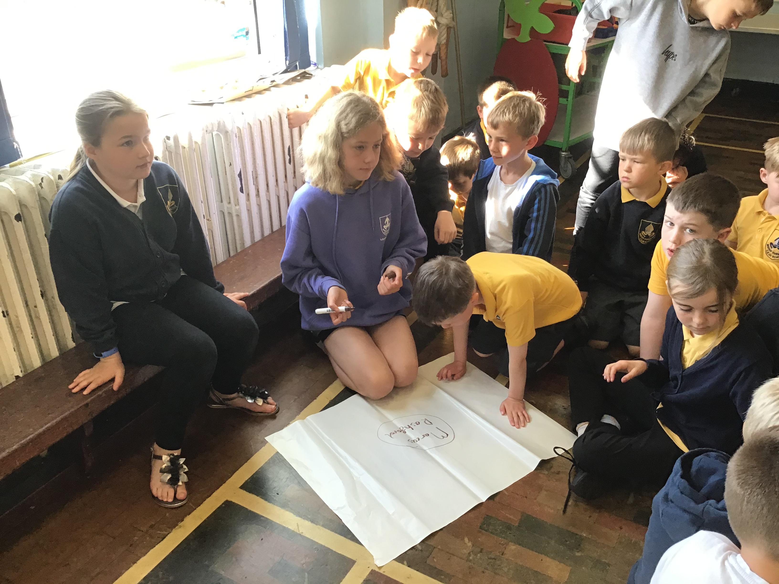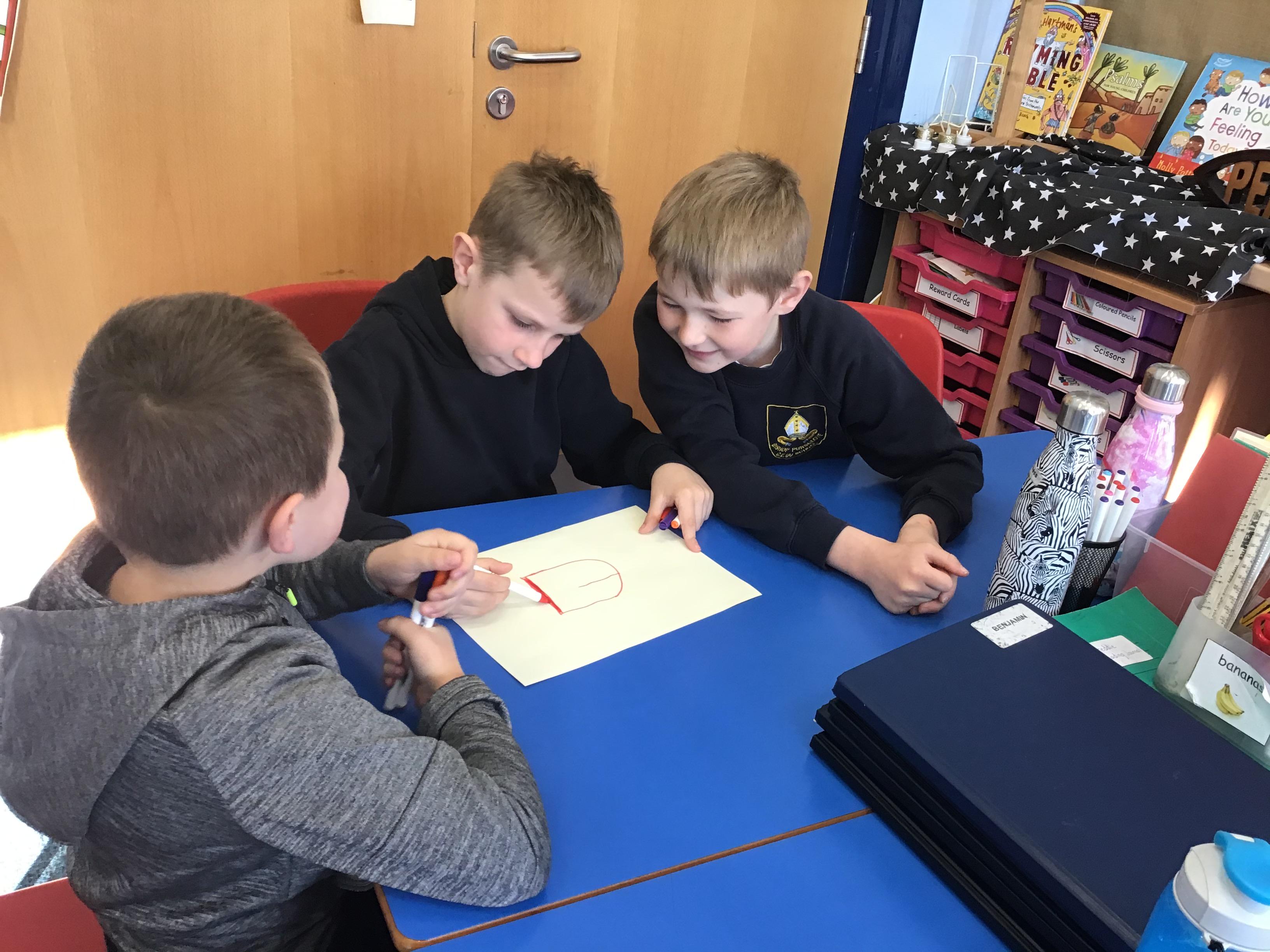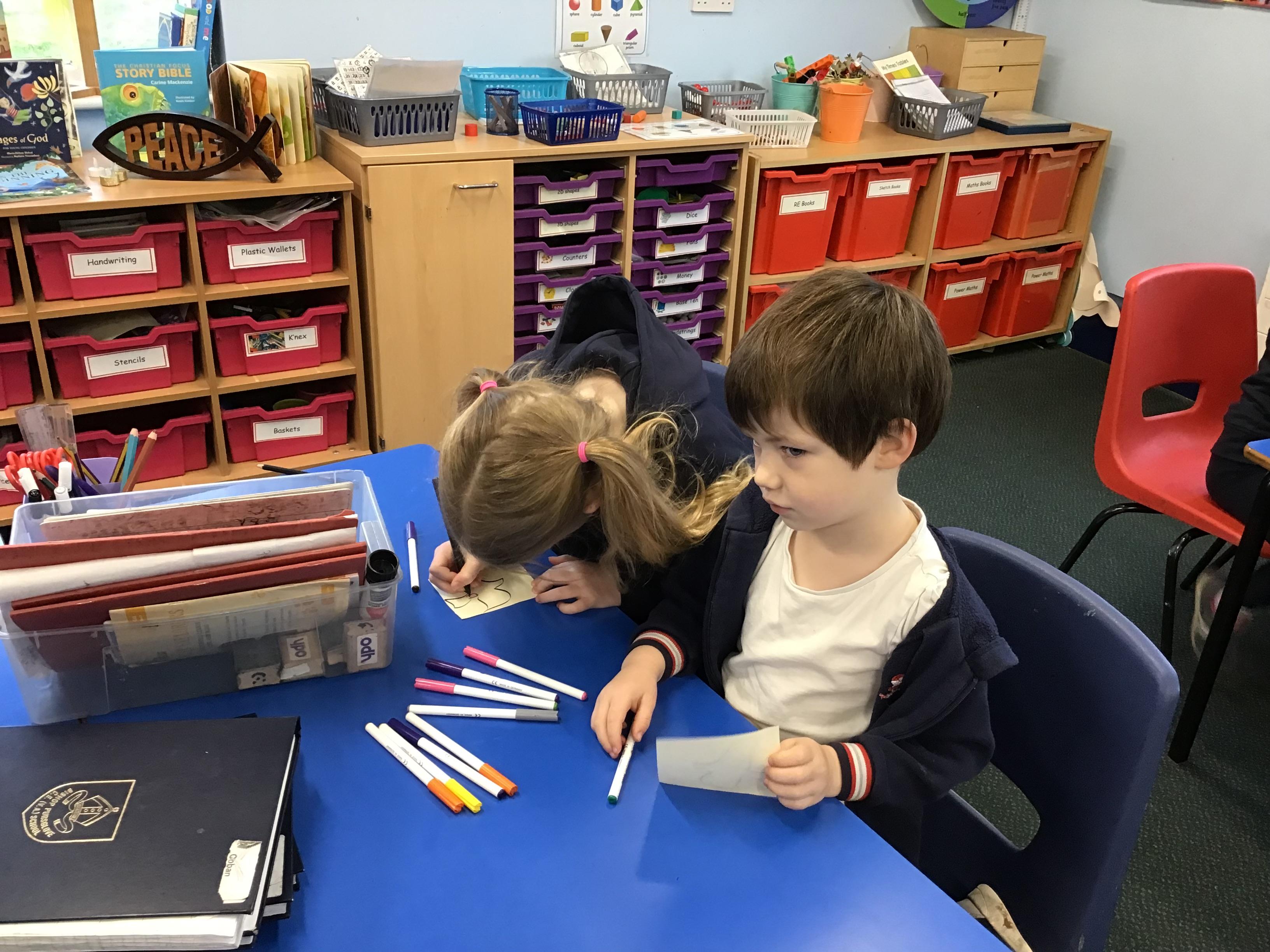In House Worship the Year 6s have led worship. These activities have included - creating pictures with partners on whiteboards by rubbing out sections and redrawing them to make collaborative art. This linked to the message of forgiveness being a fresh start, like wiping the slate clean. We also thought about times when we have got things wrong and had to put it right. We drew around our hands to create beautiful hand artwork.