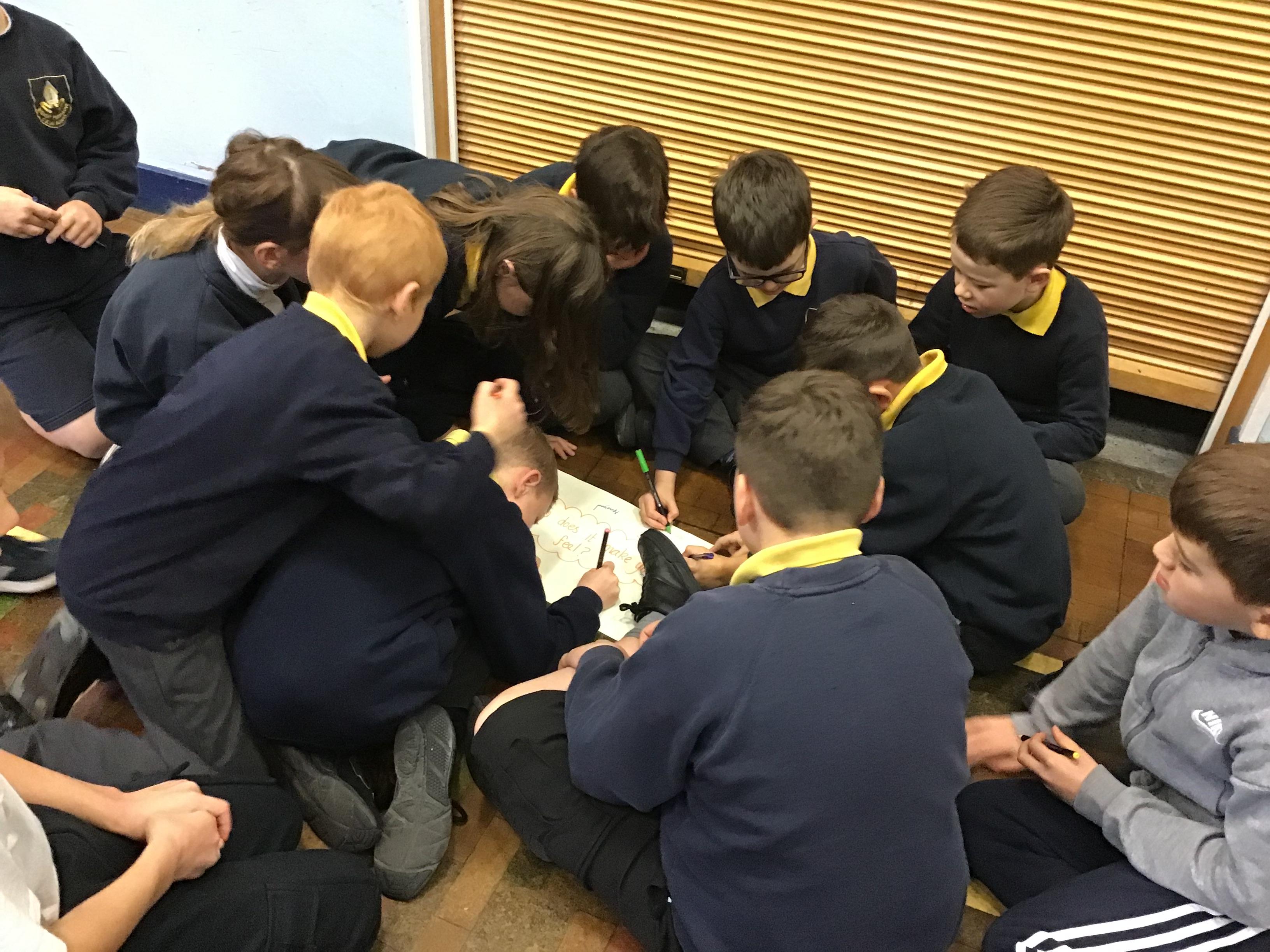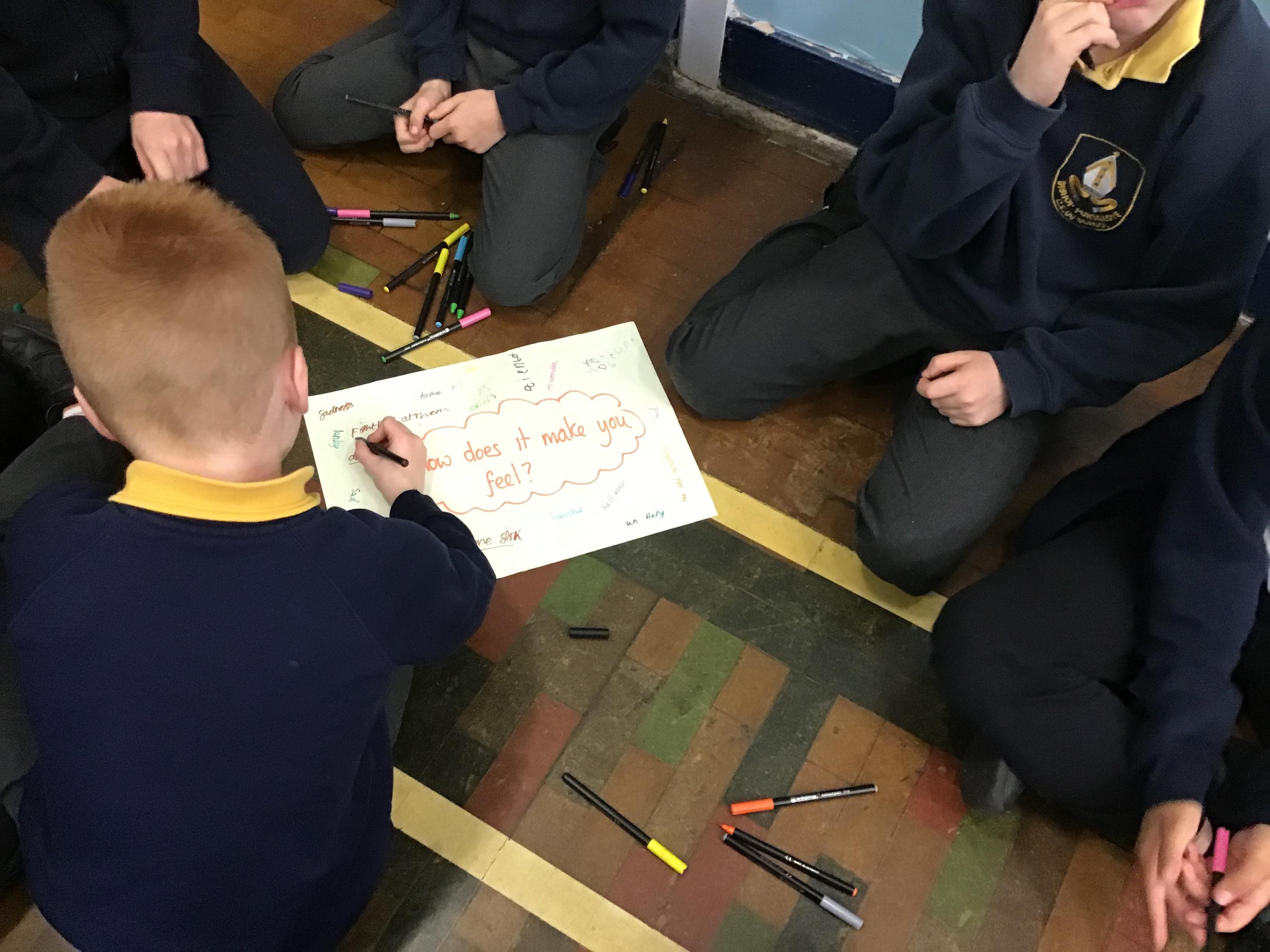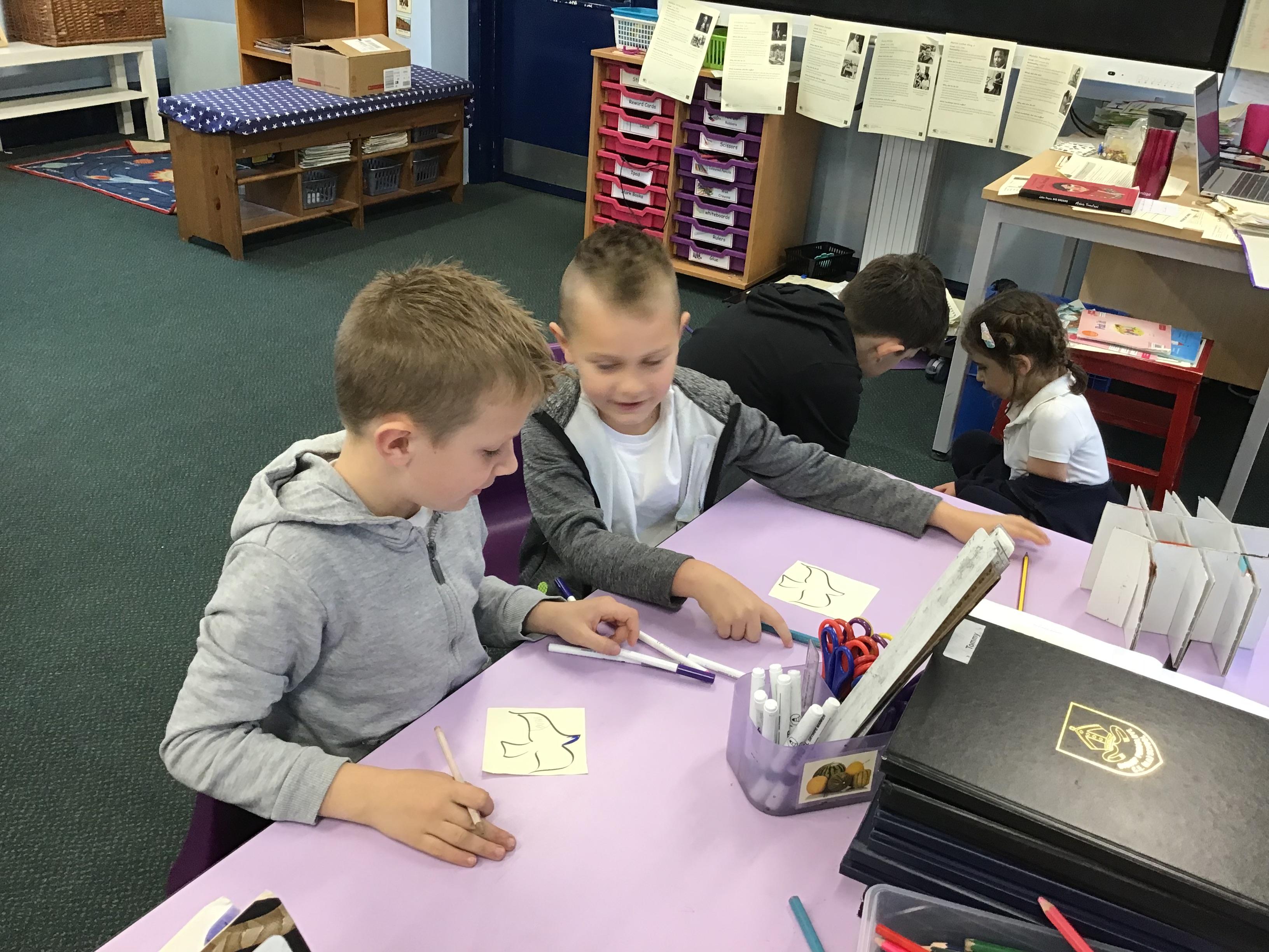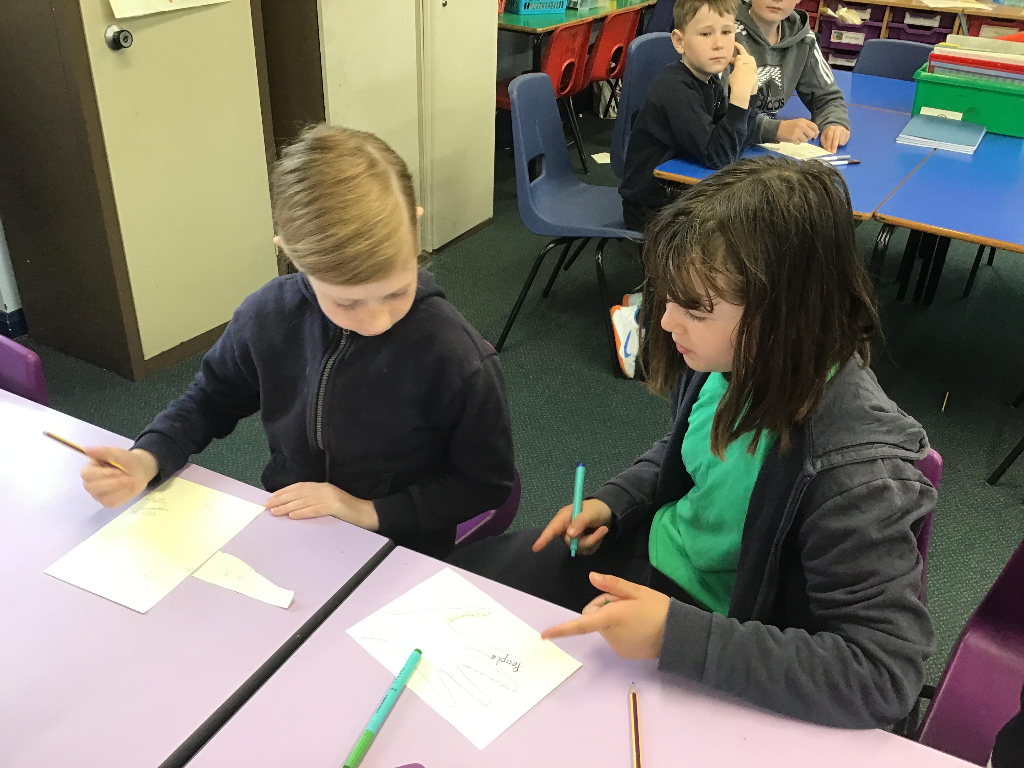 In House Worship the Year 6s have led worship. These activities have included - creating pictures with partners on whiteboards by rubbing out sections and redrawing them to make collaborative art. This linked to the message of forgiveness being a fresh start, like wiping the slate clean. We also thought about times when we have got things wrong and had to put it right. We drew around our hands to create beautiful hand artwork.