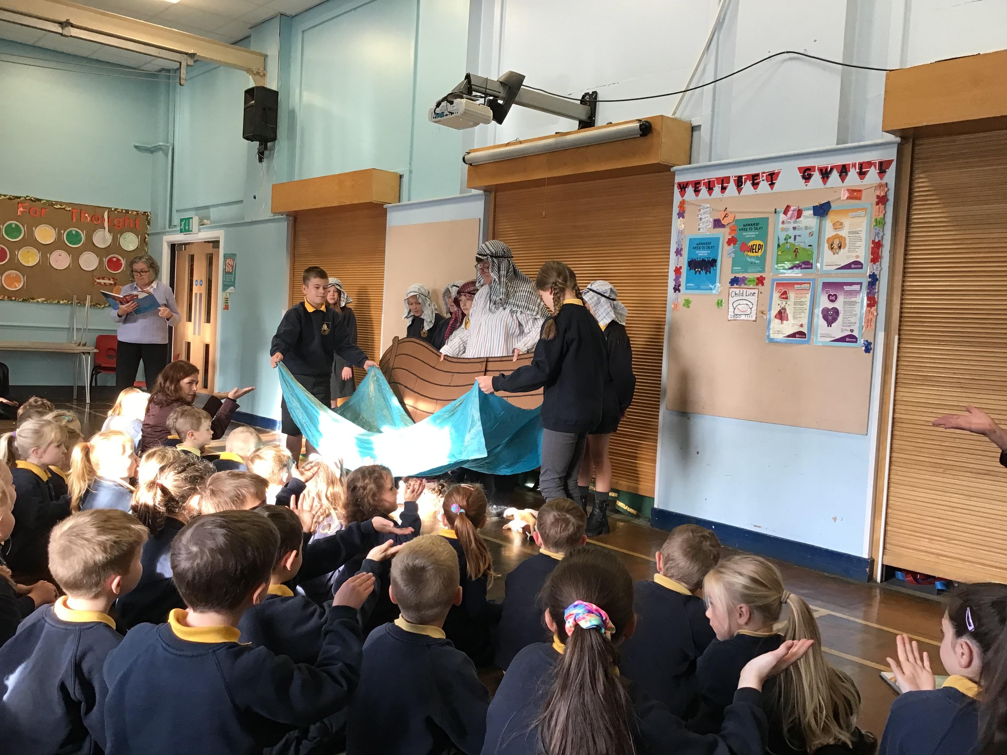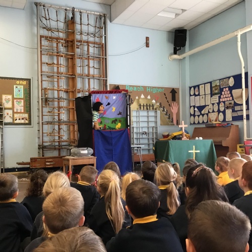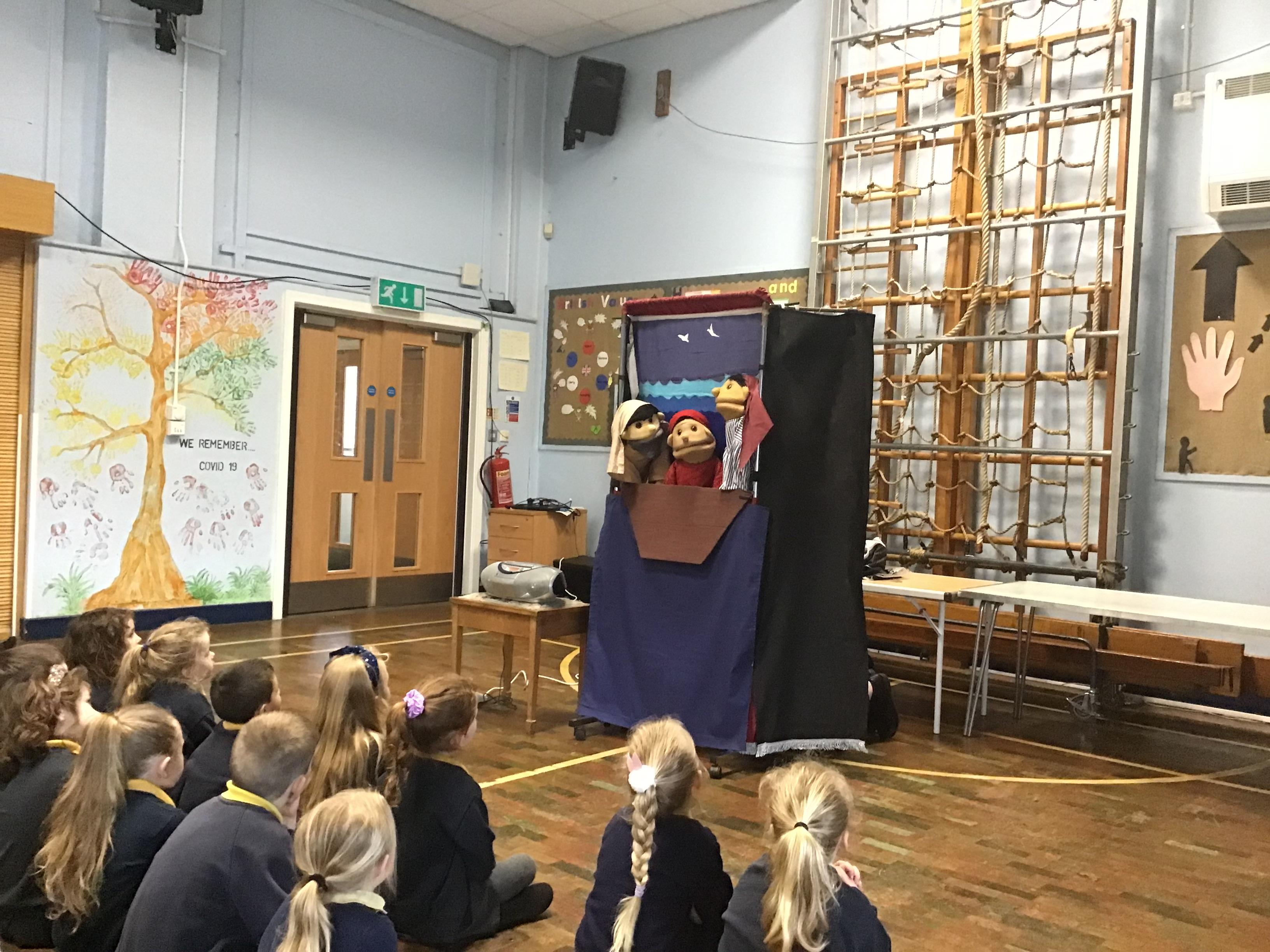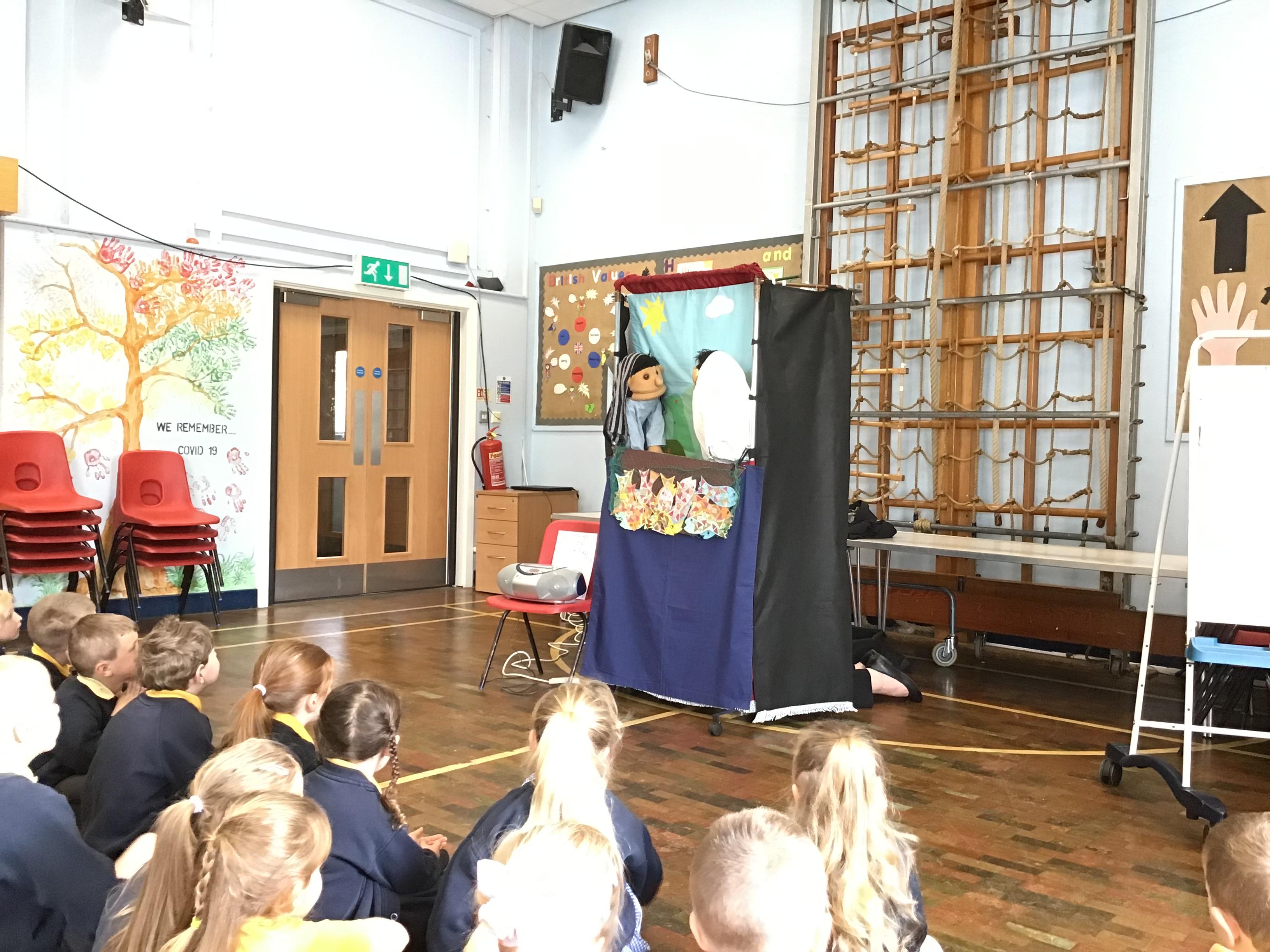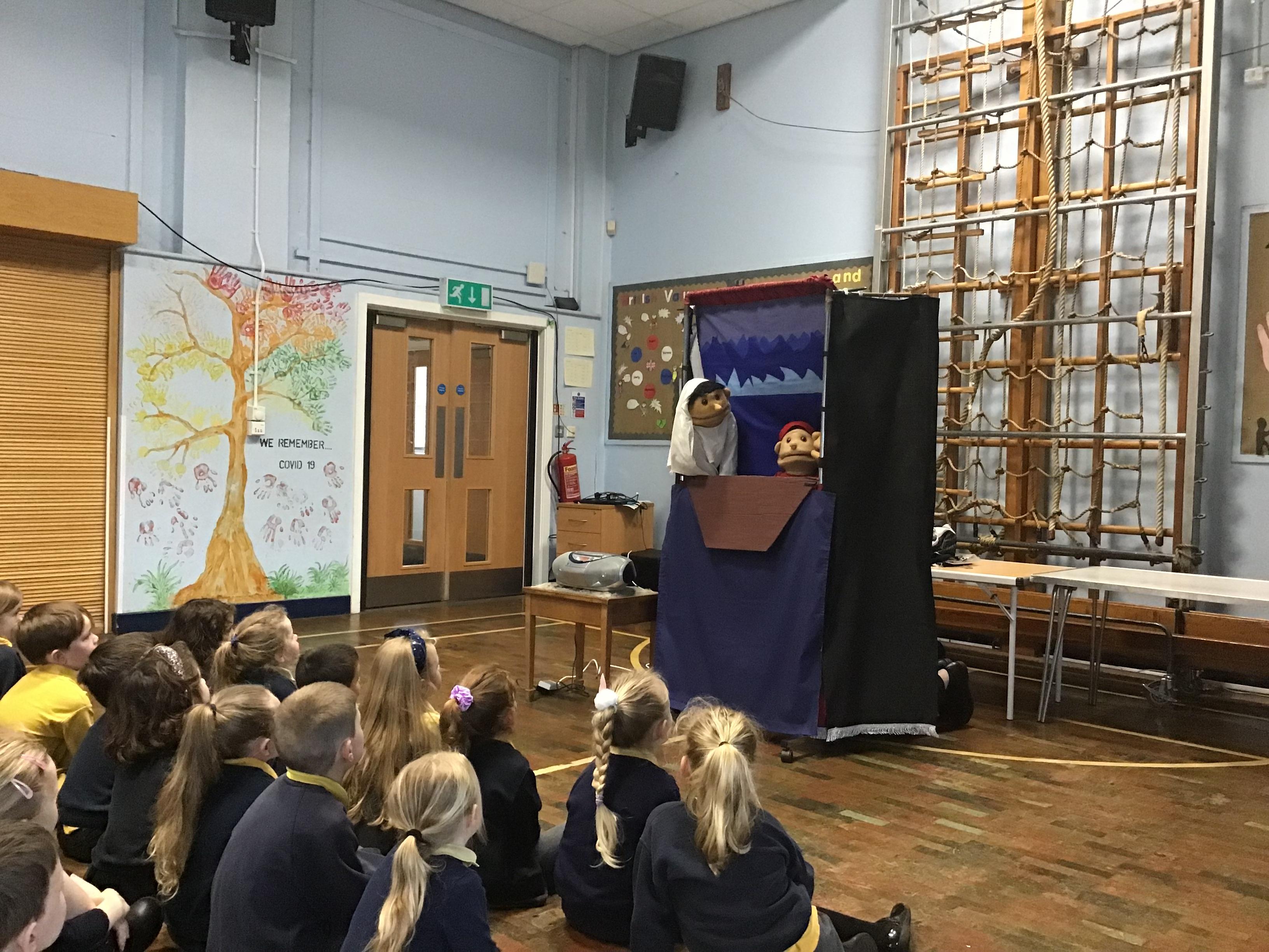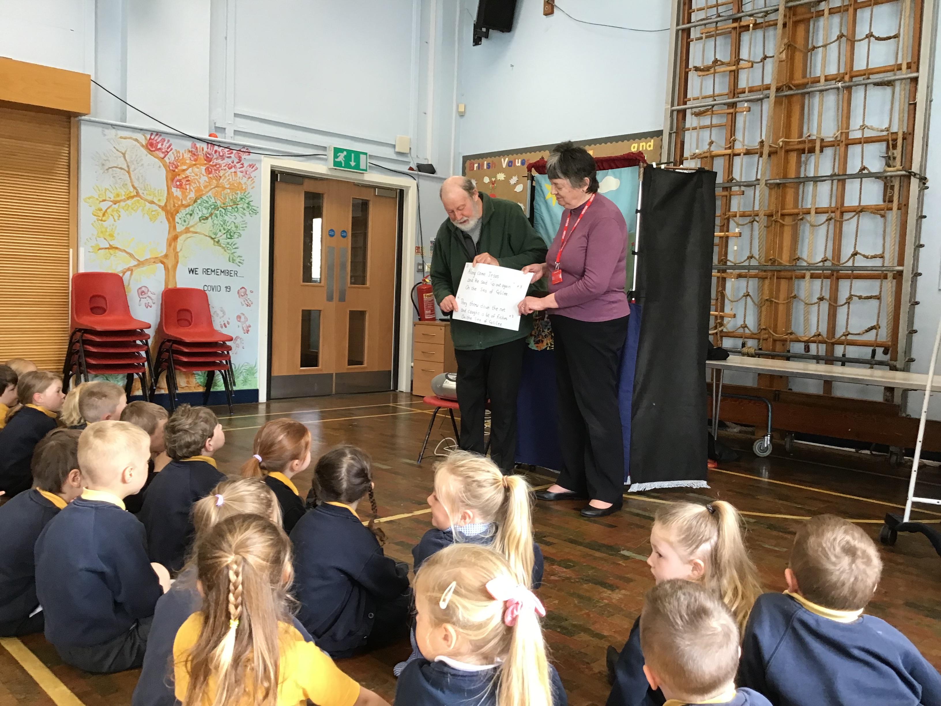 - Mrs and Mrs Briddon told the story of Jesus calming the storm, using their amazing puppets.