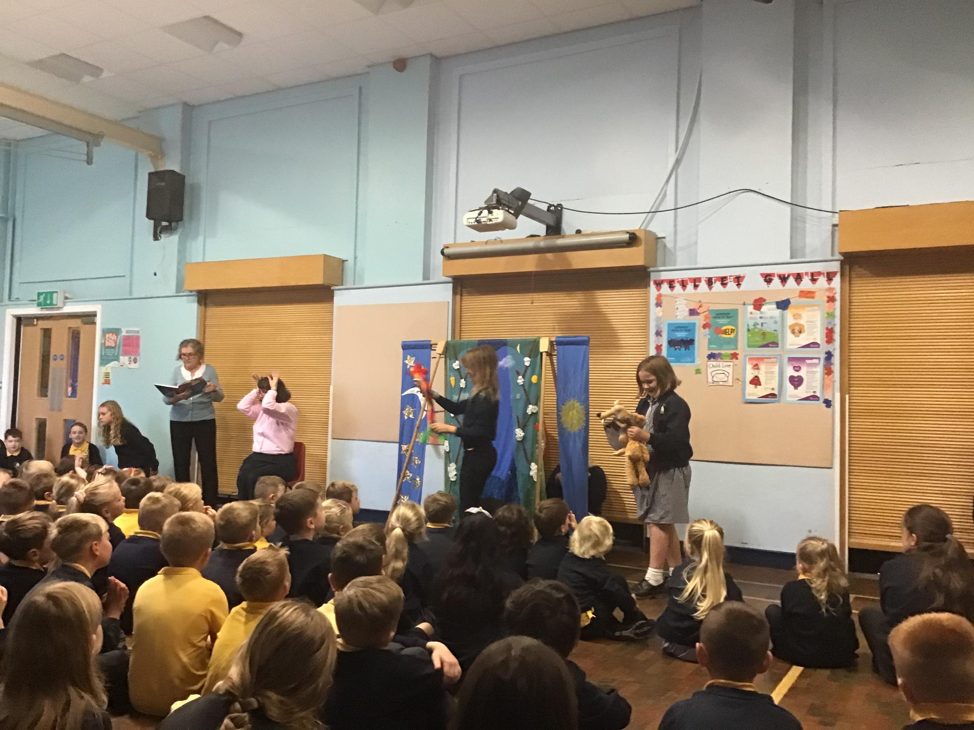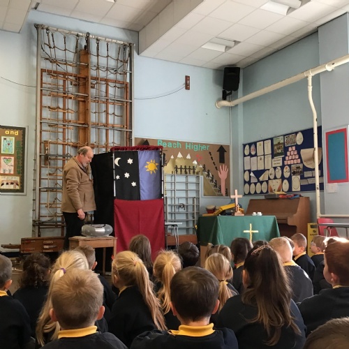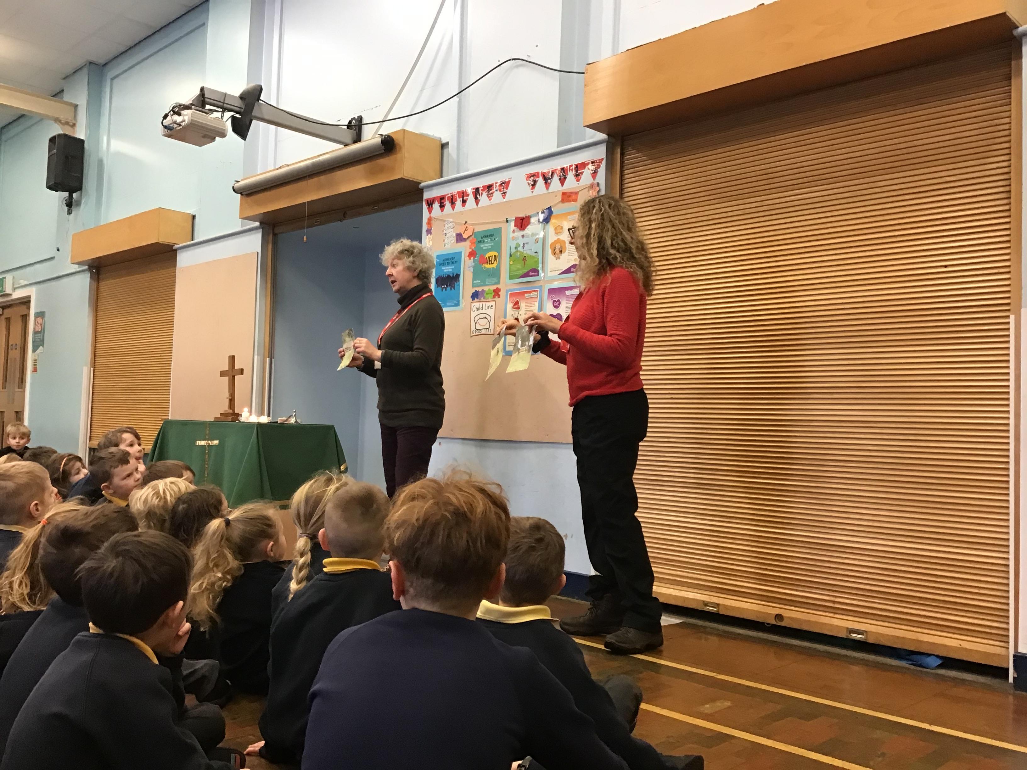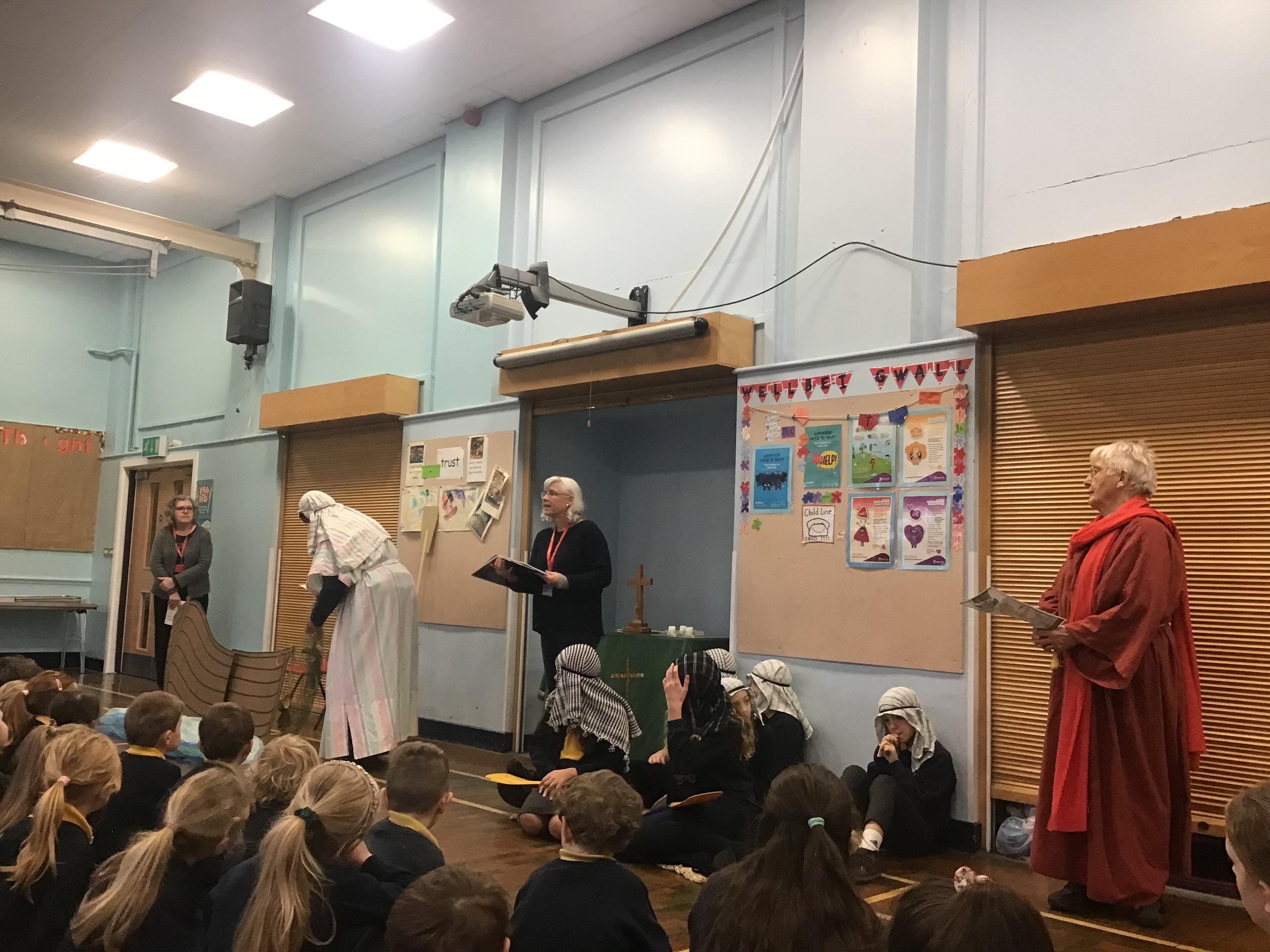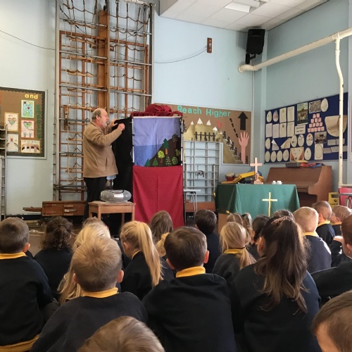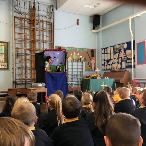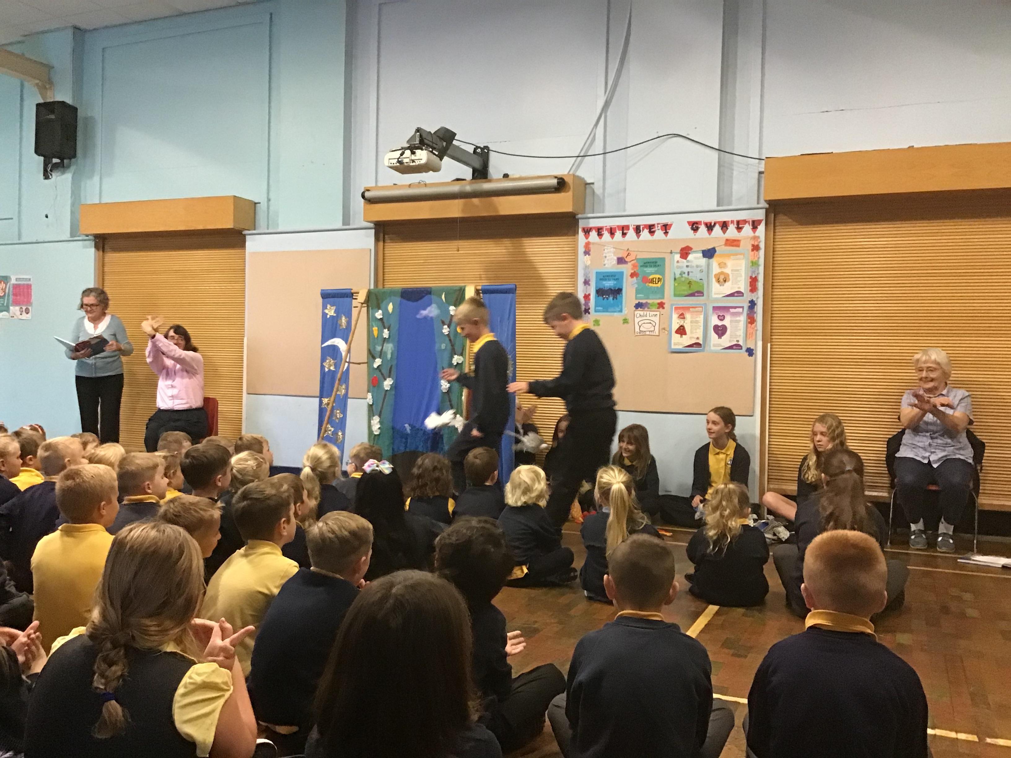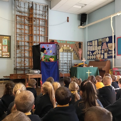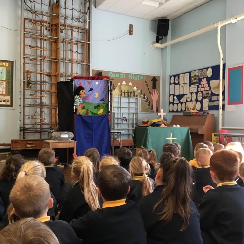 - Mrs and Mrs Briddon told the story of Jesus calming the storm, using their amazing puppets.
