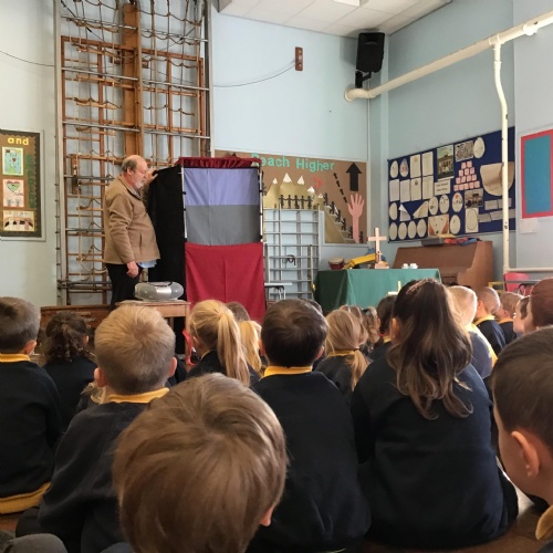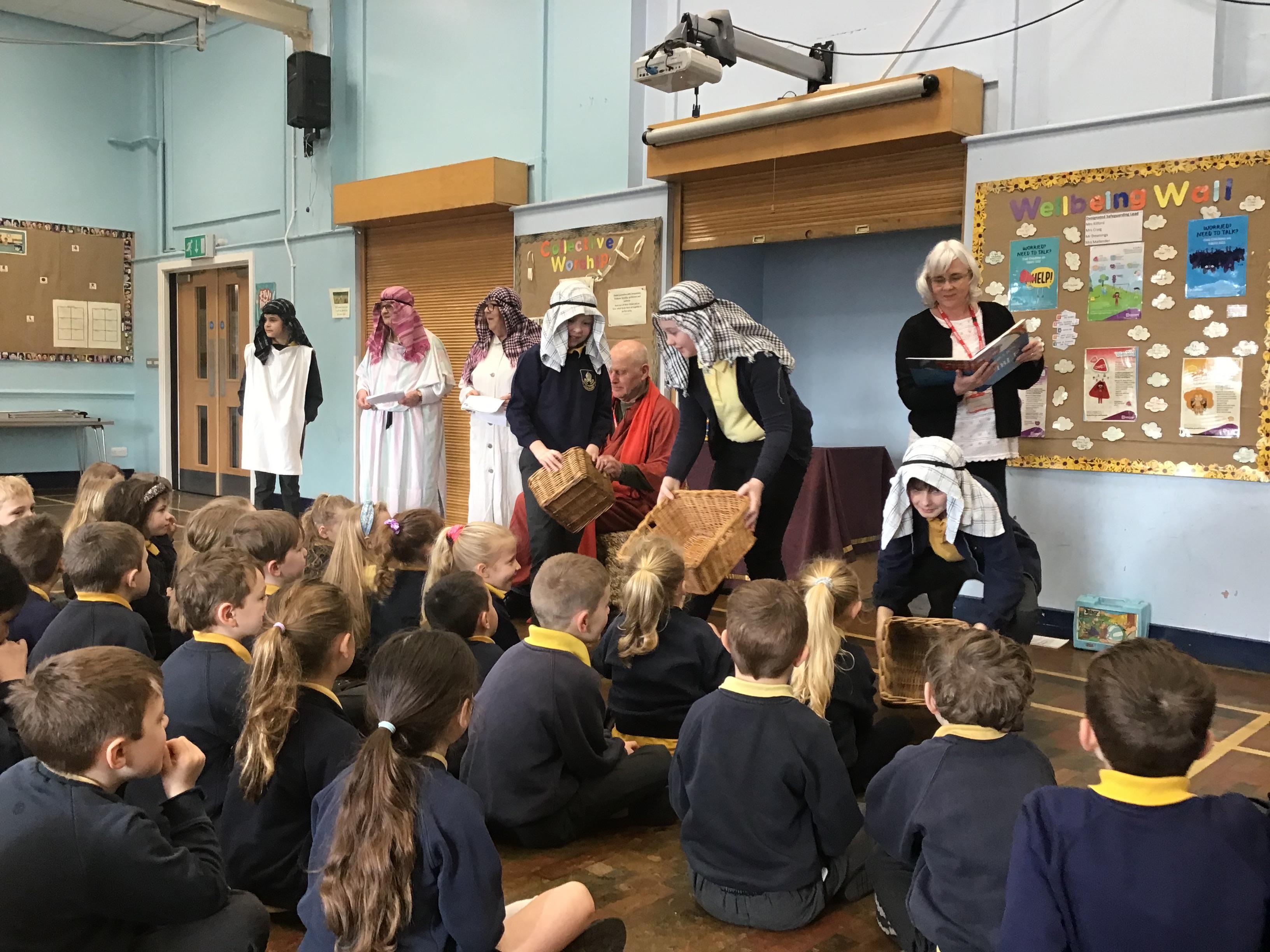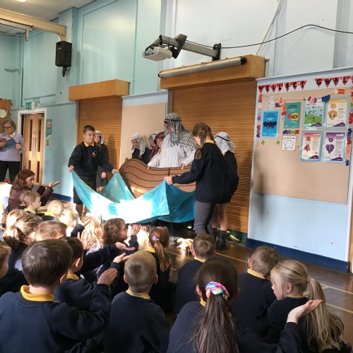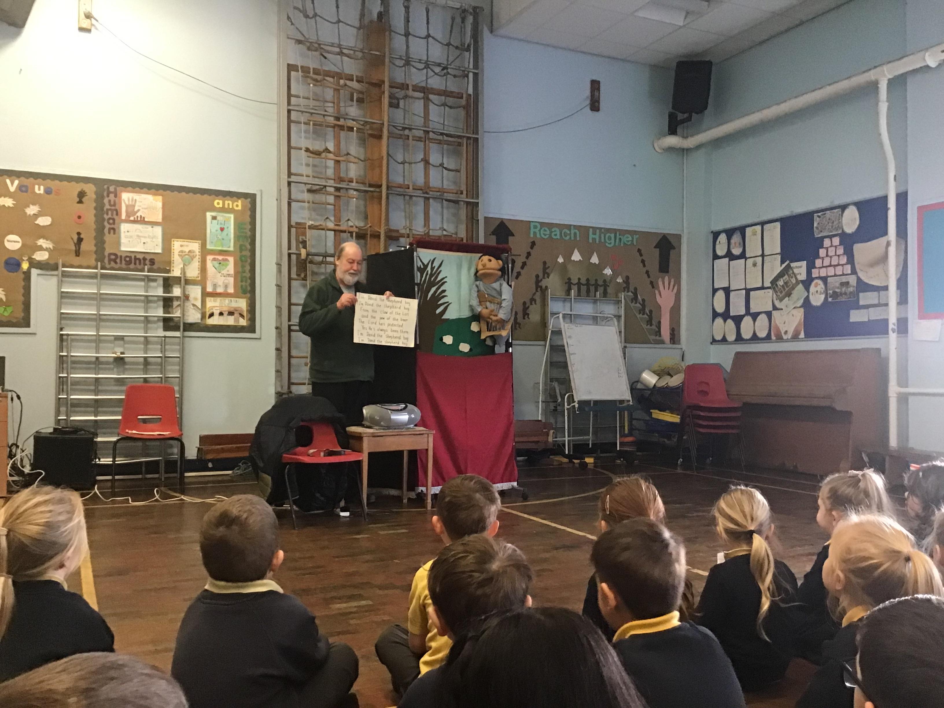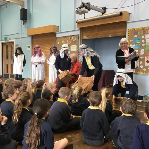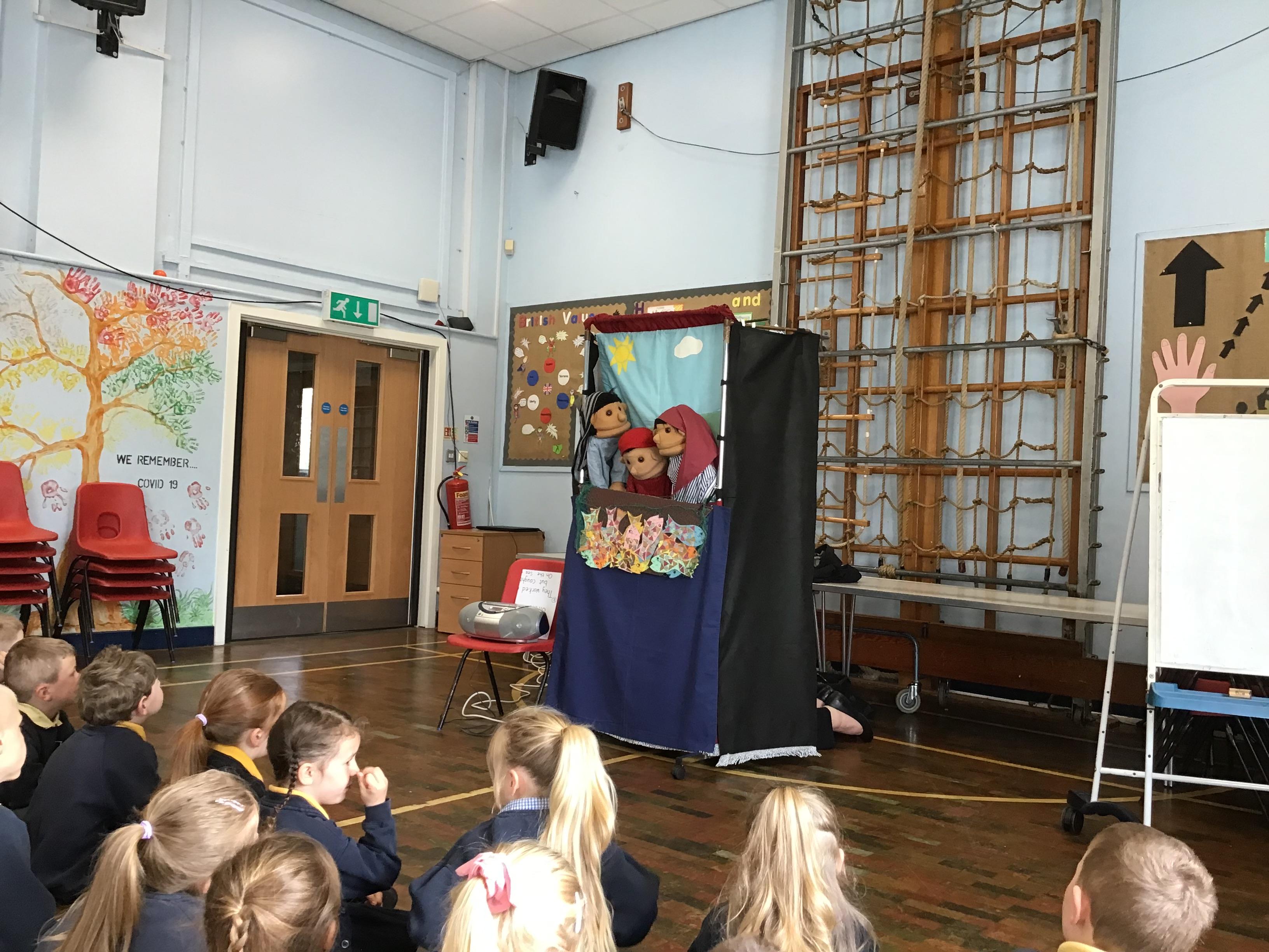 - Mr and Mrs Briddon told the story of Moses in the Bulrushes with their puppets.