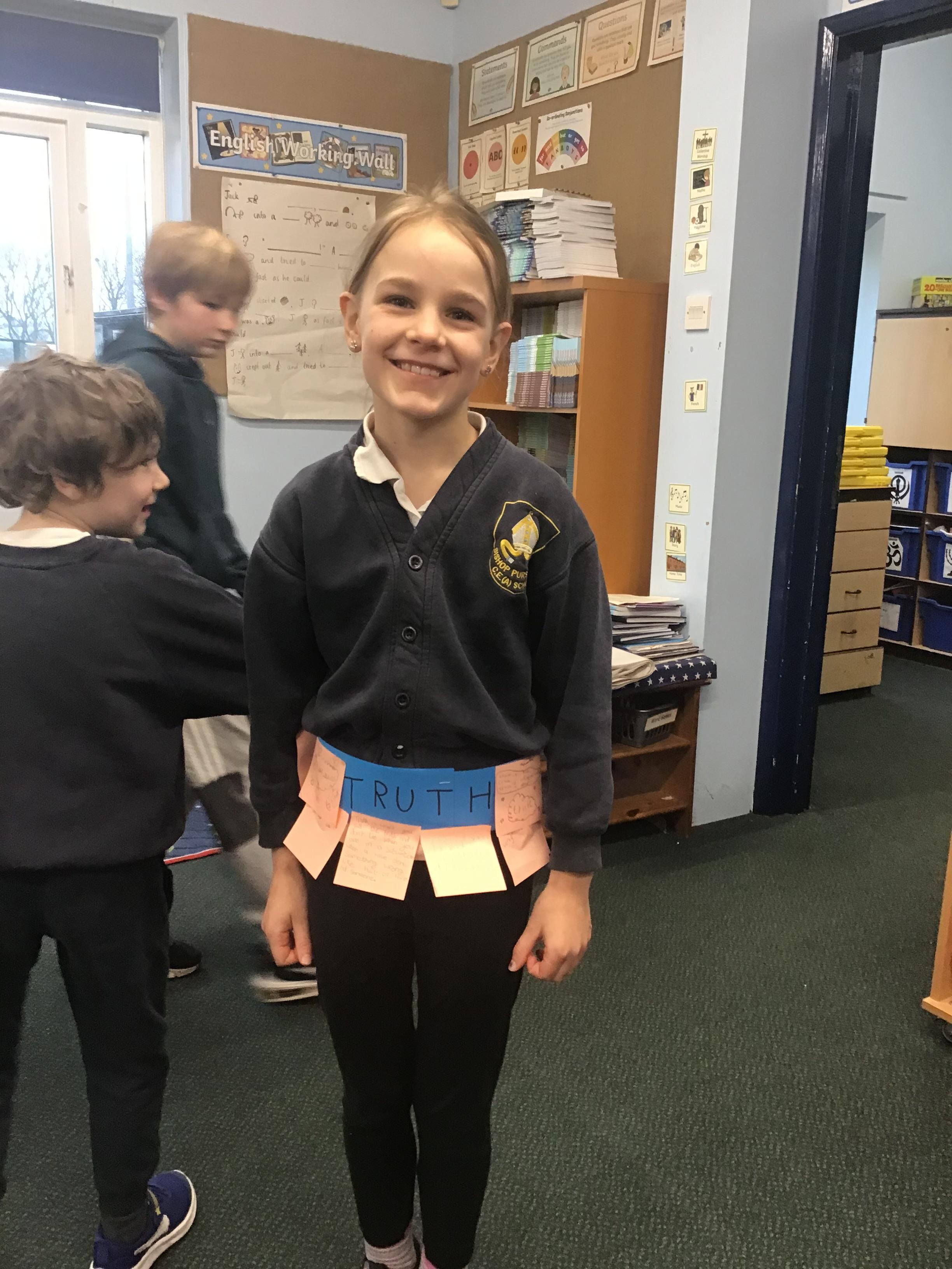 - In house worship, we learned the story of The Boy who Cried Wolf. We wrote truth acrostics and also made our own 'belts of truth,' inspired by Paul's image of wearing the armour of God.