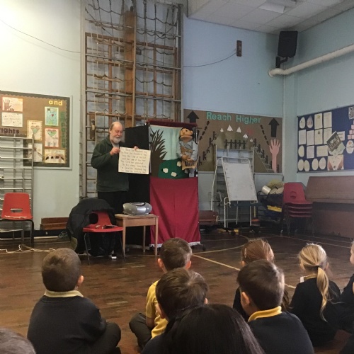 - Mrs and Mrs Briddon brought their puppets to tell the story of Ruth.