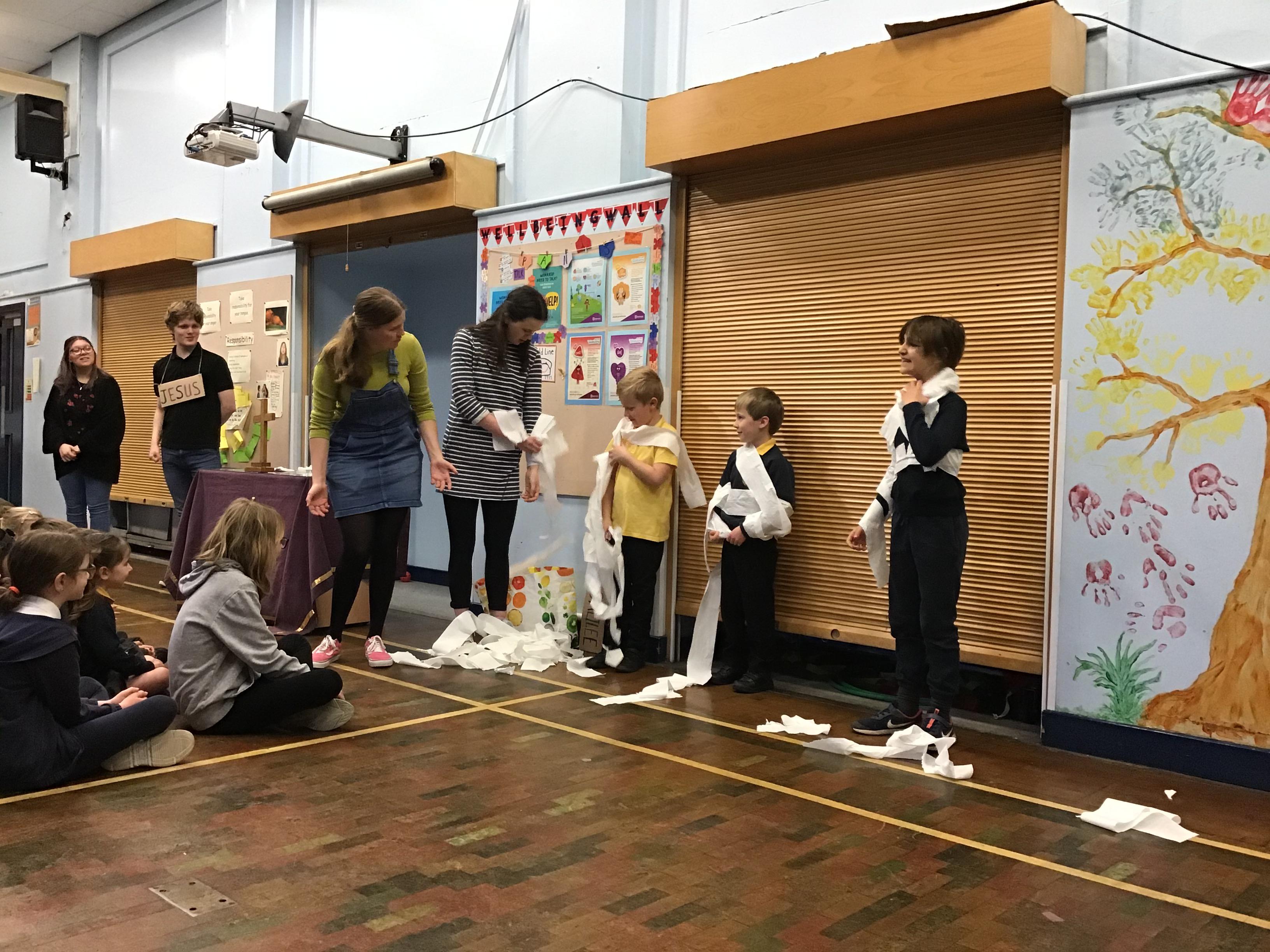 - Reverend Nicola read to us from Isaiah 1 and brought in a t shirt covered in ketchup! She told us that forgiveness with God is like dirty clothes being made completely white and clean again.