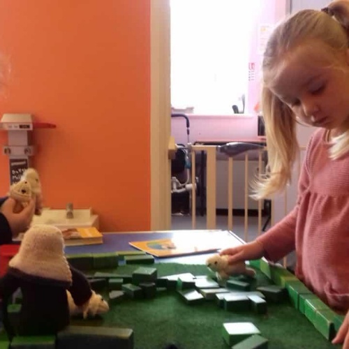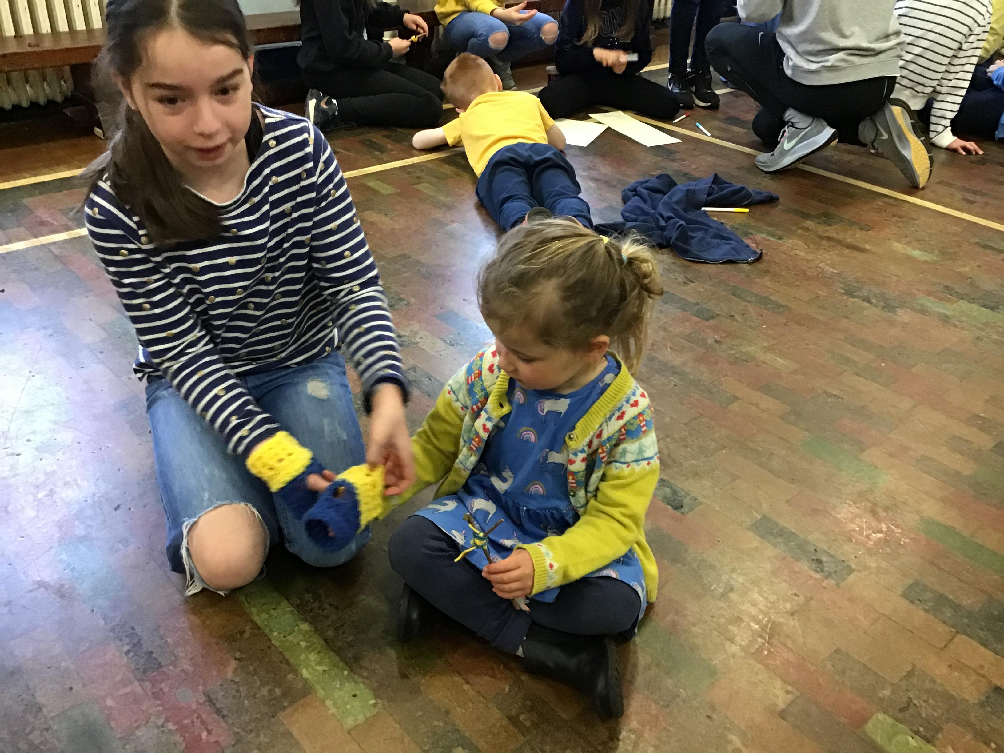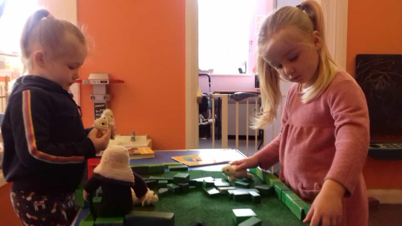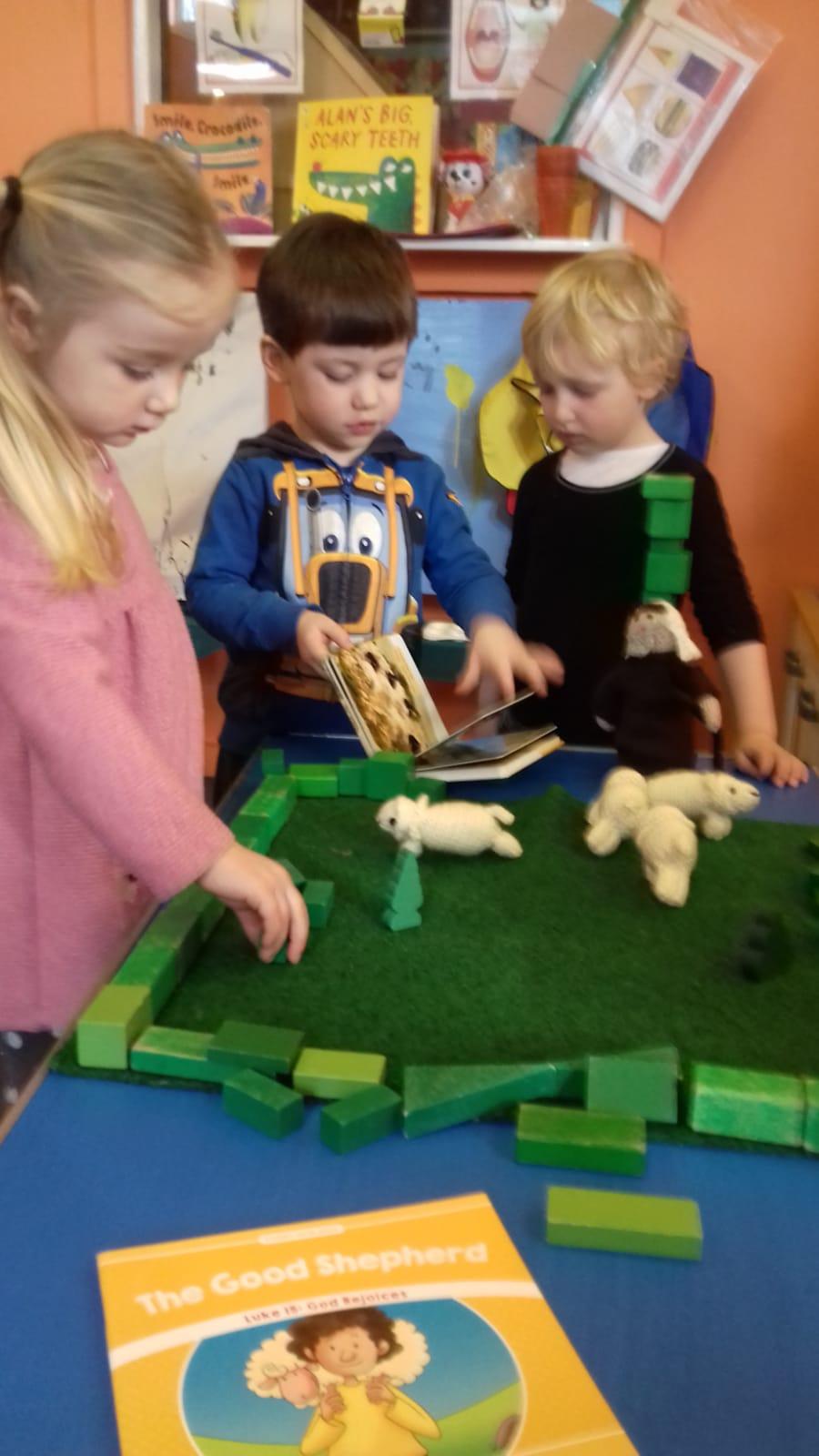 Here are preschool retelling the story with some gorgeous knitted sheep, left by Mrs Briddon.
