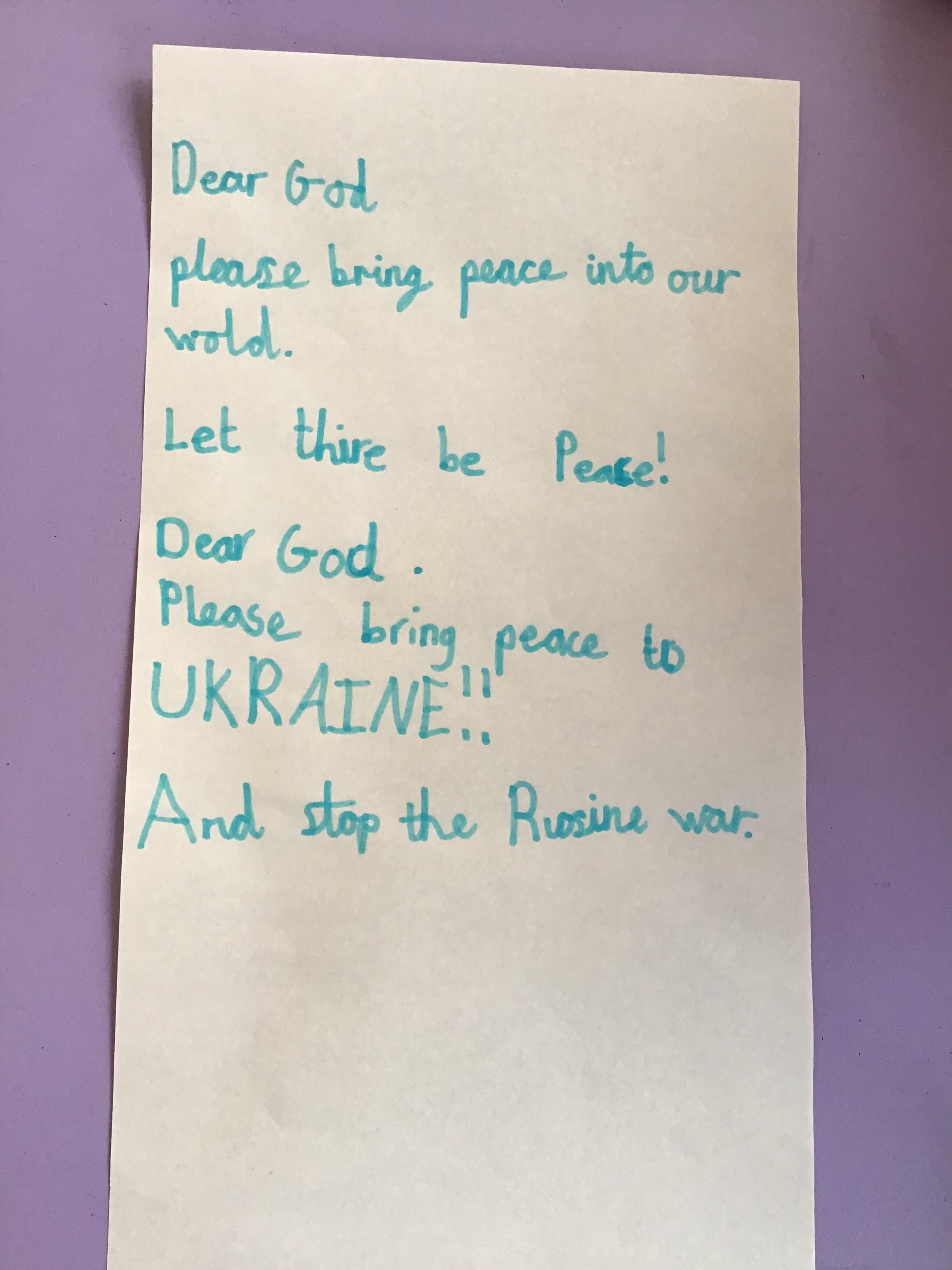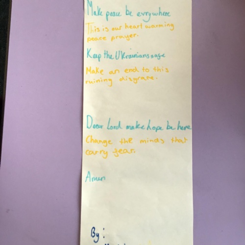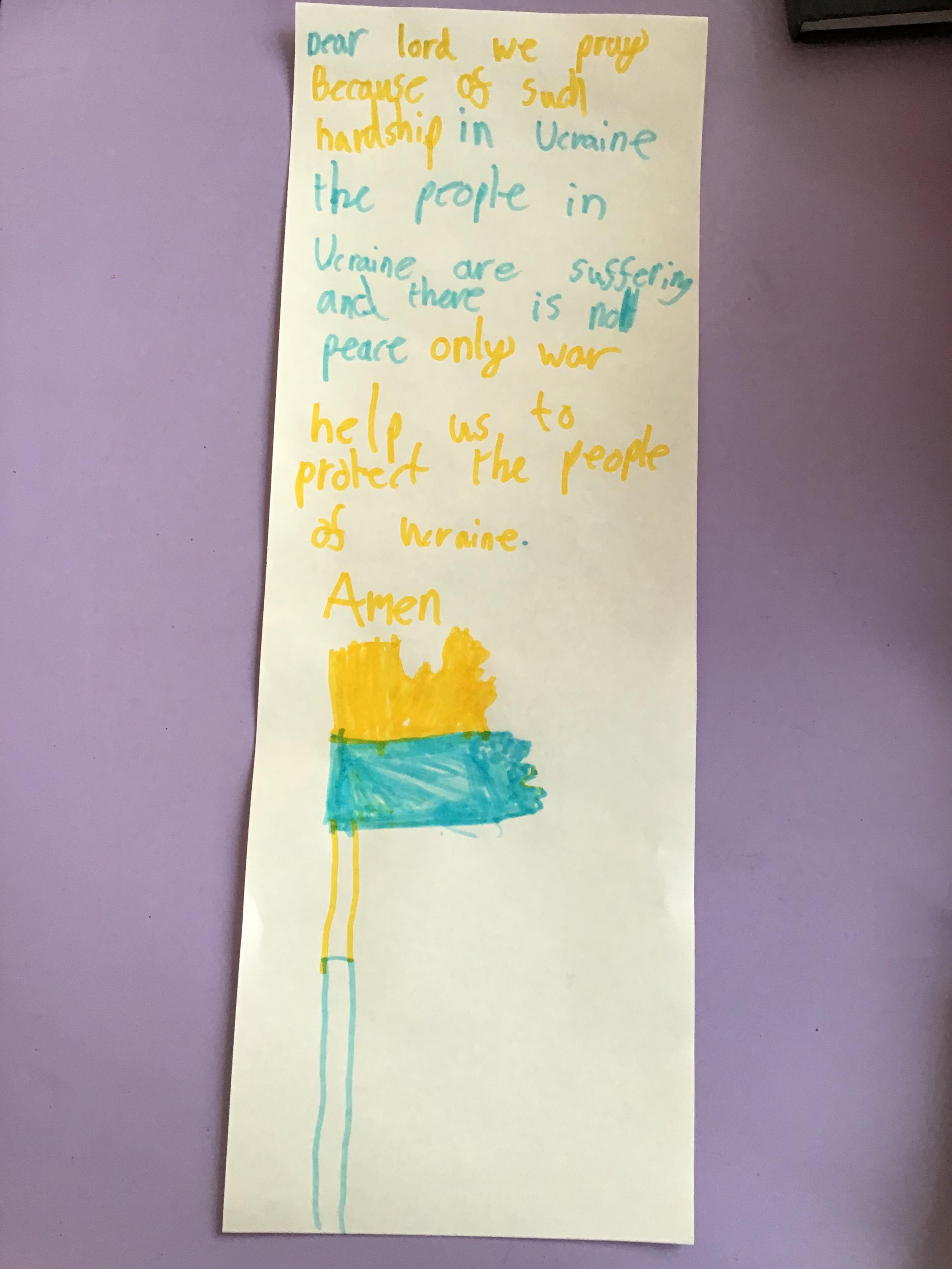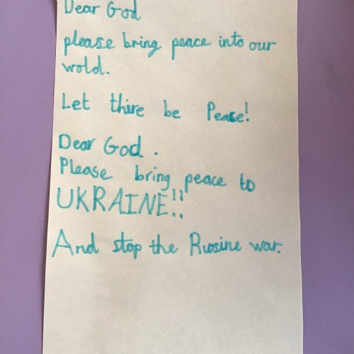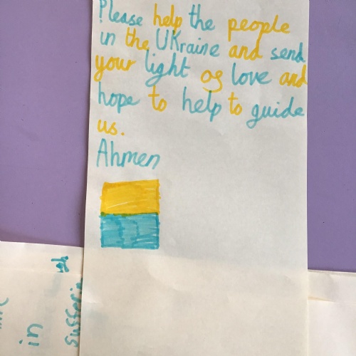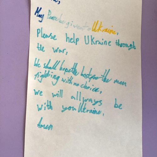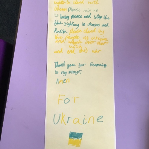 We had a special day to think about Ukraine. In Collective Worship we wrote prayers and made crosses in our house teams.