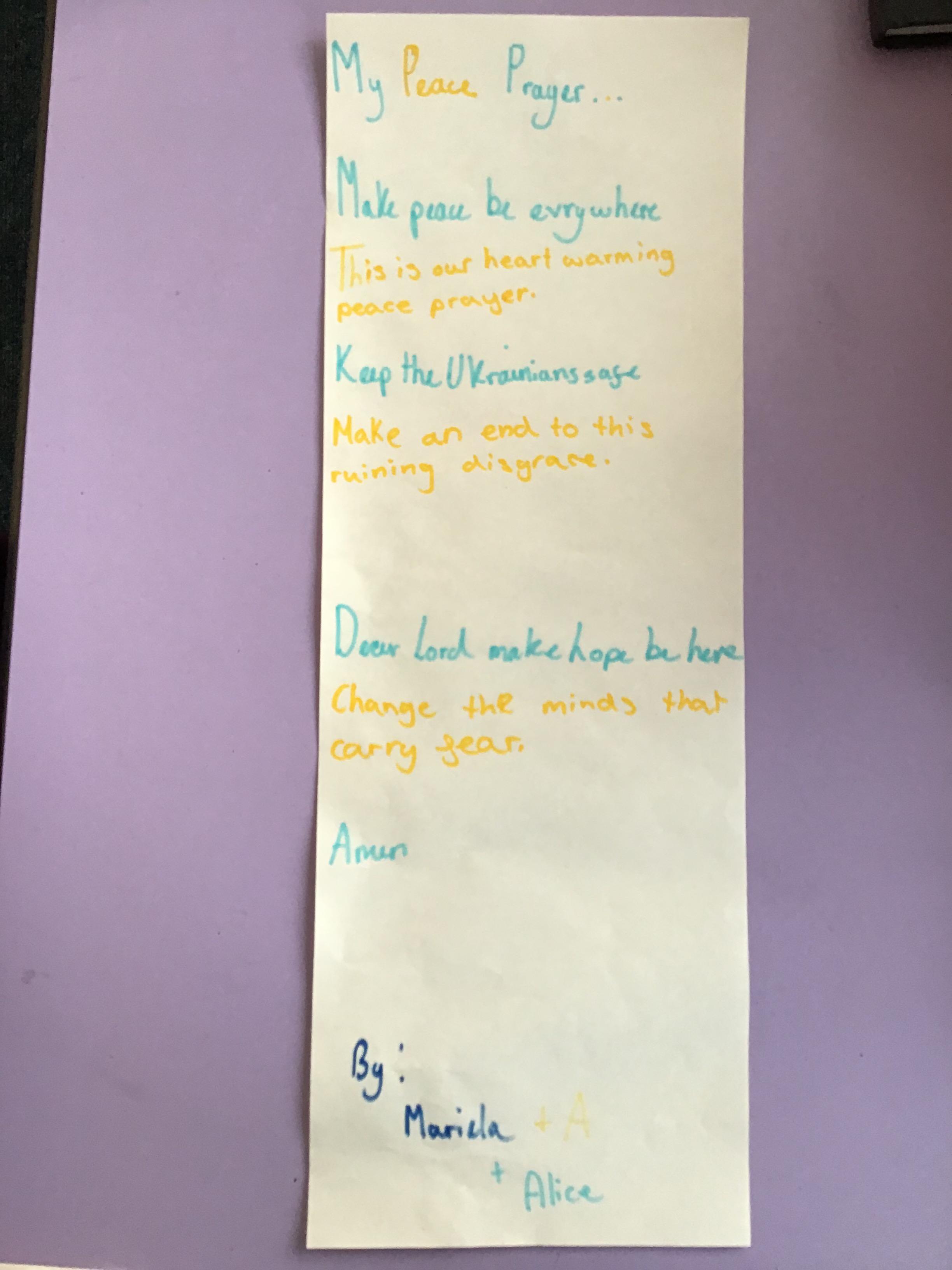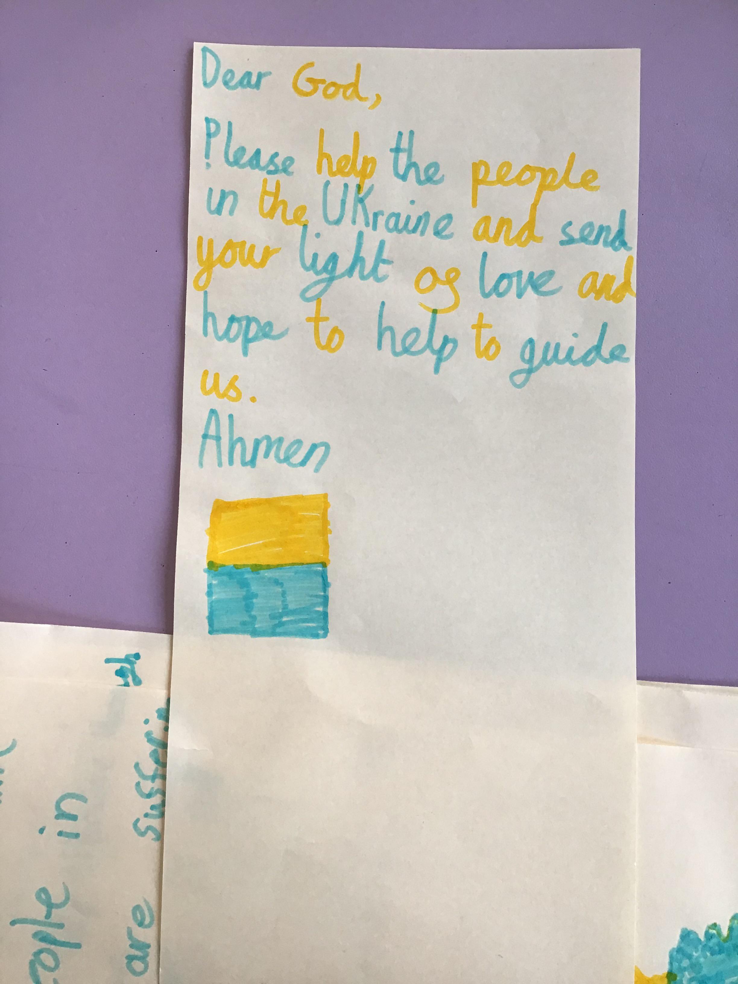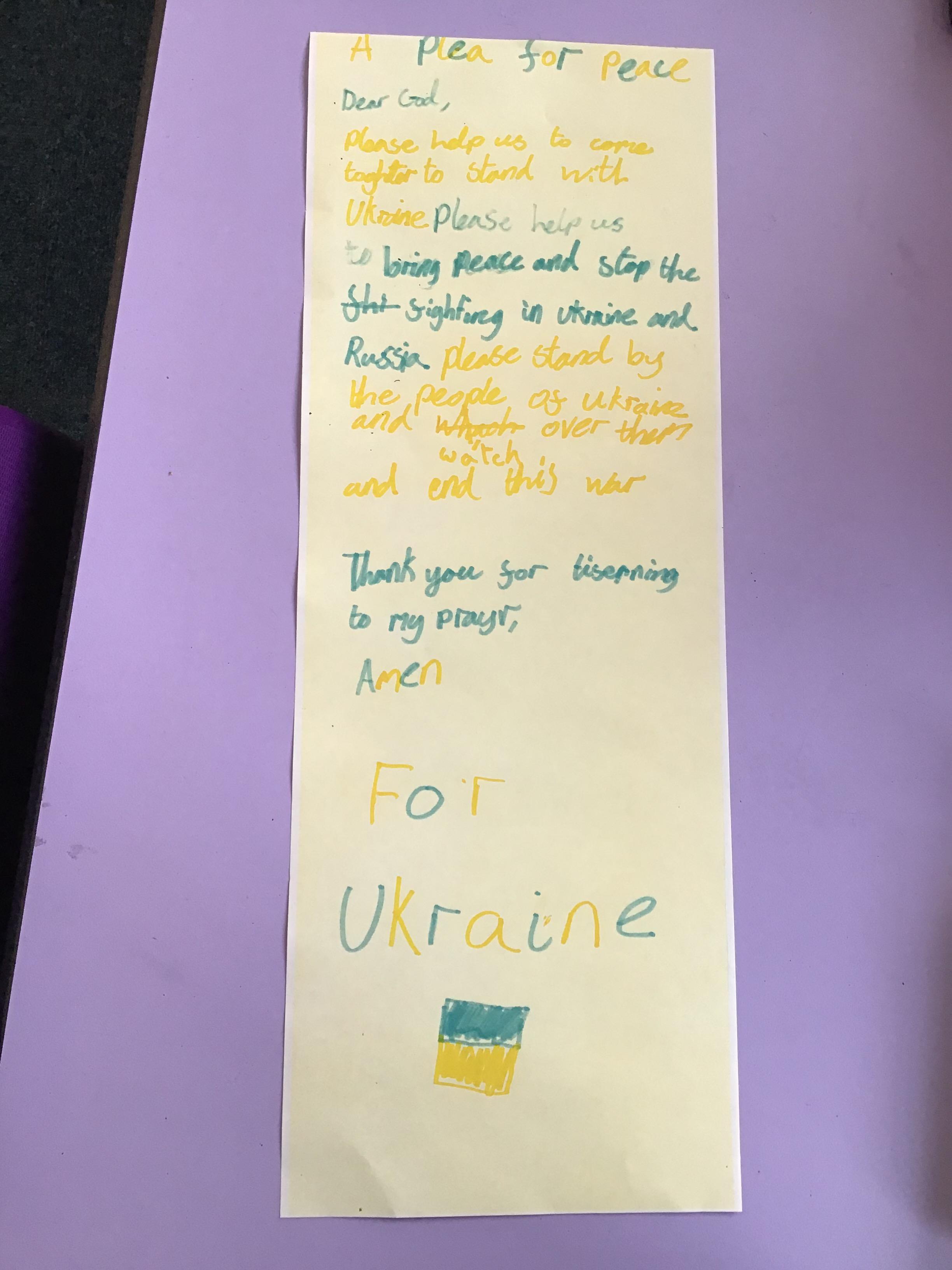 We had a special day to think about Ukraine. In Collective Worship we wrote prayers and made crosses in our house teams.